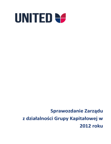 Sprawozdanie Zarządu z działalności Grupy Kapitałowej w 2012 roku Grupa Kapitałowa UNITED Spółka Akcyjna Sprawozdanie Zarządu z działalności Grupy Kapitałowej w 2012 roku I. PODSTAWOWE INFORMACJE O GRUPIE KAPITAŁOWEJ Nazwa (firma): UNITED Spółka Akcyjna Kraj: Polska Siedziba: Warszawa Adres: 02-803 Warszawa, ul. Bekasów 74 Numer KRS: 0000389467 Oznaczenie Sądu: Sąd Rejonowy dla Miasta Stołecznego Warszawy w Warszawie, XIII Wydział Gospodarczy Krajowego Rejestru Sądowego REGON: 142943119 NIP: 5213603831 Telefon: +48 22 816 55 60 Fax: +48 22 816 55 59 Poczta e-mail: [email protected] Podstawowym przedmiotem działalności Grupy Kapitałowej UNITED S.A. jest prowadzenie działalności w zakresie reklamy i marketingu. Na dzieo 31.12.2012 roku działalnośd operacyjna grupy prowadzona była poprzez spółkę NCF Group Sp. z o.o. Przedmiotem działalności NCF Group Sp. z o.o. jest świadczenie usług promocyjnych w dużych obiektach handlowych oraz organizowaniu konferencji i szkoleo związanych z wprowadzaniem na rynek nowych produktów. Spółka zajmuje się działaniami bezpośrednio wspierającymi sprzedaż. Działalnośd ta polega na projektowaniu i realizacji akcji promocyjnych, organizacji i zarządzaniu zespołami konsultantek i ambasadorek marki pracującymi w punktach sprzedaży, organizacji akcji o charakterze eventowym, obsługa marek premium. NCF Group Sp. z o.o współpracuje z 60 koordynatorami terenowymi, co pozwala mu świadczyd usługi na terenie całego kraju. Na dzieo 31.12.2012 r w skład Grupy Kapitałowej UNITED S.A. wchodziły następujące podmioty. siedziba rodzaj powiązania rodzaj konsolidacji przedmiot działalności kapitał zakładowy udział w kapitale zakładowym udział w całkowitej liczbie głosów UNITED S.A. Warszawa, ul. Bekasów 74 dominująca Metoda pełna Zarządzanie holdingiem 10 887 000 zł - - NCF Group Sp. z o.o Warszawa, ul. Bekasów 74 zależna metoda pełna promocja i reklama 200 000 zł 100,00% 100,00% Zamek Giżycki Sp. z o.o. Giżycko, ul. Św. Brunona 1 stowarzyszona metoda praw własności hotelarstwo 6 500 000 zł 45,38% 45,38% Nazwa podmiotu Grupa Kapitałowa UNITED Spółka Akcyjna Sprawozdanie Zarządu z działalności Grupy Kapitałowej w 2012 roku Kapitał zakładowy Na dzieo 31 grudnia 2012 roku kapitał struktura kapitału zakładowego przedstawiała się następująco: KAPITAŁ AKCYJNY akcje zwykłe na okaziciela akcje zwykłe na okaziciela akcje zwykłe na okaziciela akcje zwykłe na okaziciela akcje imienne uprzywilejowane akcje zwykłe na okaziciela Kapitał akcyjny RAZEM Seria/emisja Rodzaj uprzywilejowa nia A B C D E F 2 głosy/akcje - Liczba akcji 1 000 000 220 000 400 000 750 000 500 000 106 000 000 108 870 000 Wartośd serii/emisji wg wartości nominalnej 100 000,00 22 000,00 40 000,00 75 000,00 50 000,00 10 600 000,00 10 887 000,00 Skład Zarządu Spółki na dzieo 31 grudnia 2012 roku Jan Karaszewski - Prezes Zarządu Zmiany w składzie Zarządu W dniu 11 czerwca 2012r. rezygnację z funkcji Prezesa Zarządu złożył Pan Tomasz Rogalski. W tym samym dniu Rada Nadzorcza powołała na stanowisko Prezesa Zarządu pana Krzysztofa Grybionko. W dniu 22 listopada 2012 r. rezygnację z pełnionej funkcji Prezesa Zarządu złożył Pan Krzysztof Grybionko. W tym samym dniu Rada Nadzorcza powołała na stanowisko Prezesa Zarządu Pana Jana Karaszewskiego. Skład Rady Nadzorczej Spółki na dzieo 31 grudnia 2012 roku Krzysztof Berzyoski Izabela Karaszewska Alicja Witkowska Krystyna Trojaoczyk Grzegorz Kozok Członek Rady Nadzorczej Członek Rady Nadzorczej Członek Rady Nadzorczej Członek Rady Nadzorczej Członek Rady Nadzorczej Zmiany w składzie Rady Nadzorczej W dniu 12 czerwca 2012 roku rezygnację z pełnienia funkcji Członka Rady Nadzorczej złożyła Pani Małgorzata Piotrowska. W dniu 14 czerwca 2012 roku rezygnację z pełnienia funkcji Członka Rady Nadzorczej złożył Pan Jacek Saczuk. W dniu 29 czerwca 2012 roku rezygnację z pełnienia funkcji Członka Rady Nadzorczej złożył Pan Szymon Filipczak. W dniu 30 czerwca 2012 roku Zwyczajne Walne Zgromadzenie podjęło uchwały o powołaniu w skład Rady Nadzorczej następujące osoby: Pana Sebastiana Huczka, Pana Piotra Zygmanowskiego, Pana Dawida Korubę. W dniu 1 sierpnia 2012 roku rezygnację z pełnienia funkcji Członków Rady Nadzorczej Spółki złożyli: Pan Sebastian Huczek, Pan Dawid Koruba, Pani Katarzyna Drabent, Pan Marcin Markiewicz. W dniu 1 sierpnia 2012 r. Nadzwyczajne Walne Zgromadzenie powołało w skład Rady Nadzorczej następujące osoby: Pana Krzysztofa Berzyoskiego, Pana Krzysztof Okooskiego, Panią Izabelę Karaszewską, Panią Krystynę Trojaoczyk, Panią Alicję Witkowską W dniu 16 listopada 2012 roku Nadzwyczajne Walne Zgromadzenie powołało w skład Rady Nadzorczej Pana Grzegorza Kozoka Grupa Kapitałowa UNITED Spółka Akcyjna Sprawozdanie Zarządu z działalności Grupy Kapitałowej w 2012 roku W dniu 27 listopada 2012 roku rezygnację z pełnienia funkcji Członka Rady Nadzorczej złożył Pan Krzysztof Okooski W dniu 17 grudnia 2012 roku rezygnację z pełnienia funkcji Członka Rady Nadzorczej złożył Pan Piotr Zygmanowski. Organizacja Grupy Kapitałowej Działalnością Spółki dominującej kieruje jednoosobowy Zarząd. Spółka dominująca na dzieo 31.12.2012 r. nie zatrudniała osób na umowę o pracę. Wszystkie działania były realizowane za pomocą firm zewnętrznych. W skład struktury organizacyjnej NCF Group Sp. z o.o. wchodzi Dział Promocji oraz Dział Księgowości. Spółka na dzieo 31.12.2012 r. zatrudniała 23 osoby na podstawie umowy o pracę. Ponadto w ramach realizowanych akcji promocyjnych NCF Group Sp. z o.o., na potrzeby danej akcji, zatrudnia jednorazowo hostessy na podstawie umów zlecenia. W roku 2012 zostało zatrudnionych 630 takich osób. II. DZIAŁALNOŚĆ GRUPY KAPITAŁOWEJ W 2012 ROKU Grupa Kapitałowa UNITED S.A. powstała w dniu 31.08.2012 r. w wyniku nabycia przez UNITED S.A.