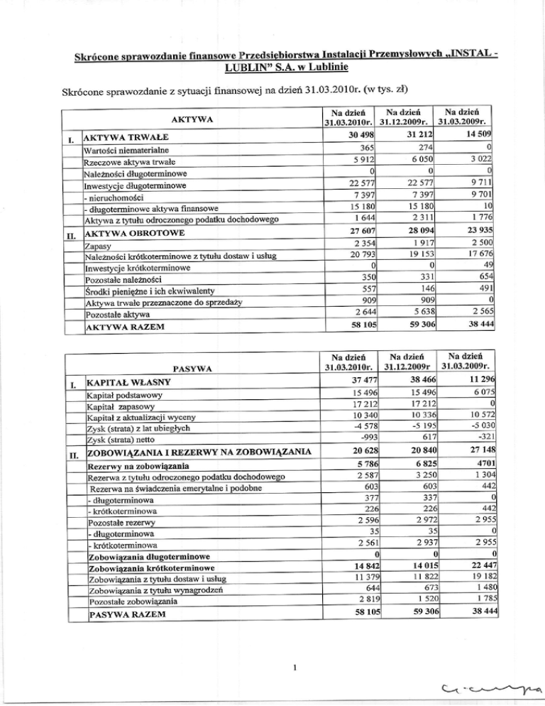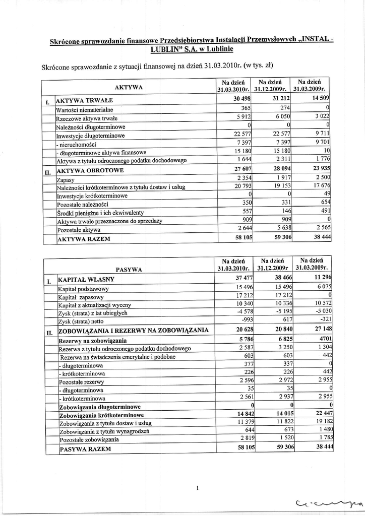 ,,INSTAL-LUBLIN' S.A., informuje,2e skr6conesprawozdaniefinansowe
