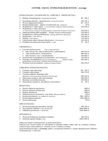 CENNIK USŁUG STOMATOLOGICZNYCH (wyciąg)