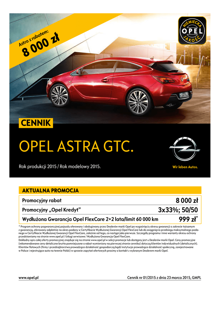 Opel Astra GTC cennik 2015 - Rok modelowy 2015