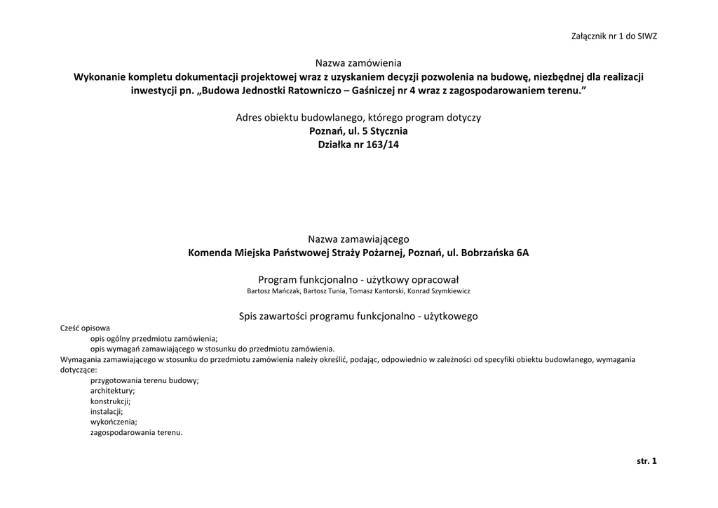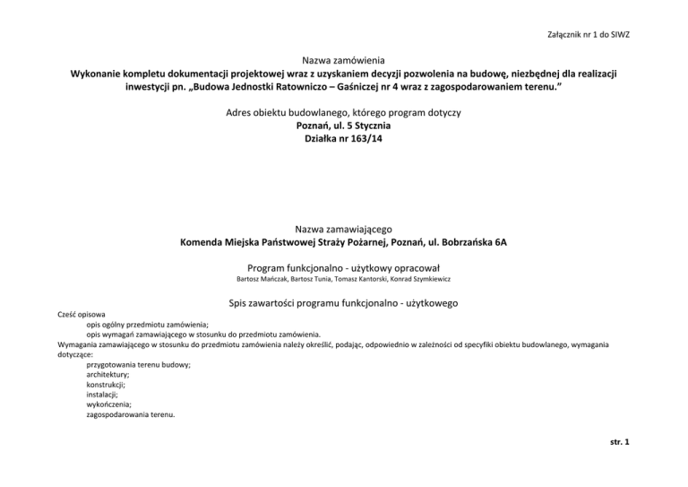 Załącznik nr 1 do SIWZ - Komenda Miejska Państwowej Straży