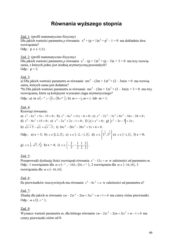Równania wyższego stopnia