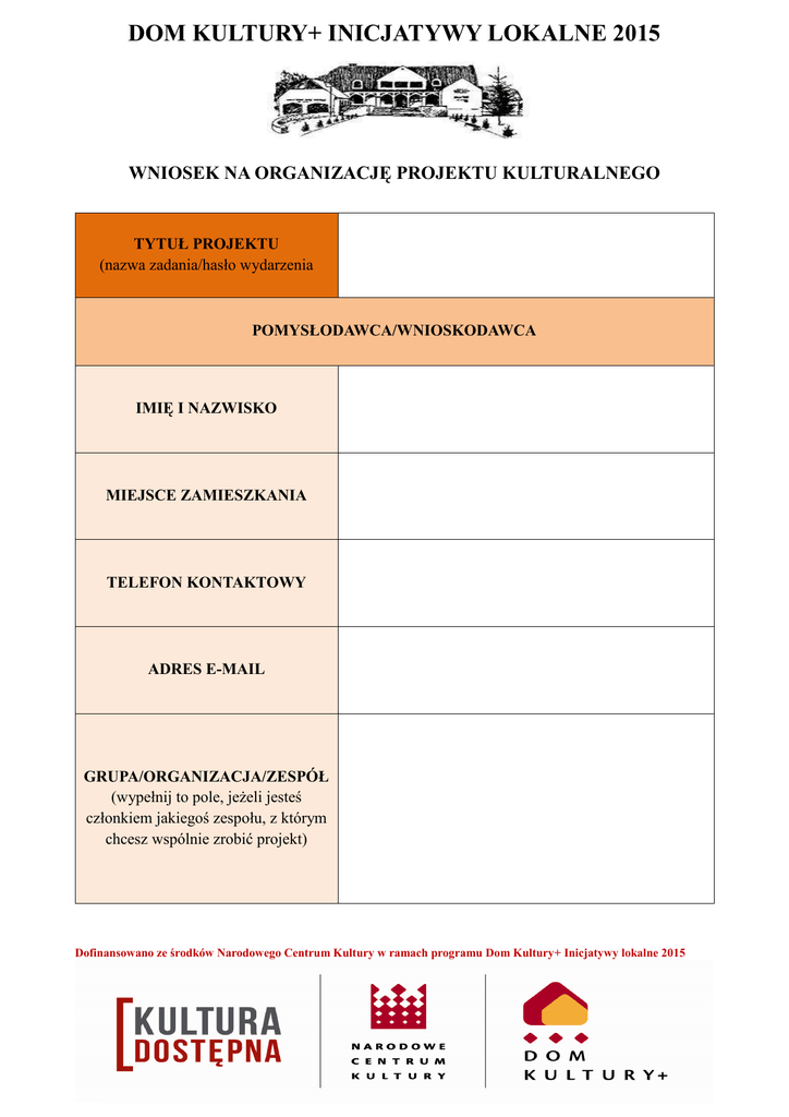 Formularz wniosku - Dom Kultury