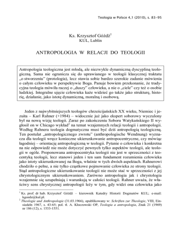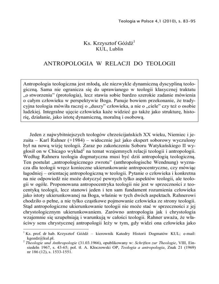 ANTROPOLOGIA W RELACJI DO TEOLOGII