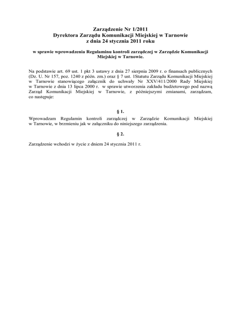 Zarządzenie nr 1 - Zarząd Dróg i Komunikacji w Tarnowie