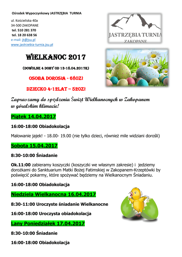 wielkanoc 2017 - Ośrodek wypoczynkowy Jastrzębia Turnia