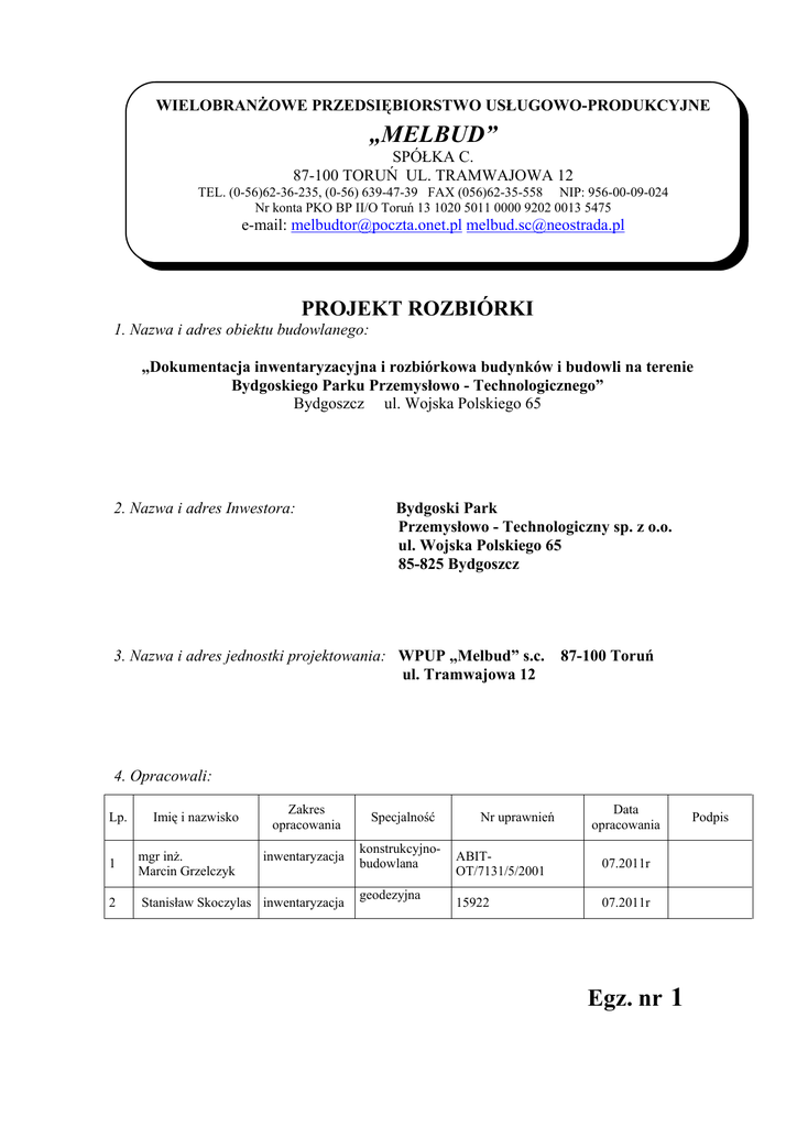 projekt rozbiórki - BIP - Bydgoski Park Przemysłowo