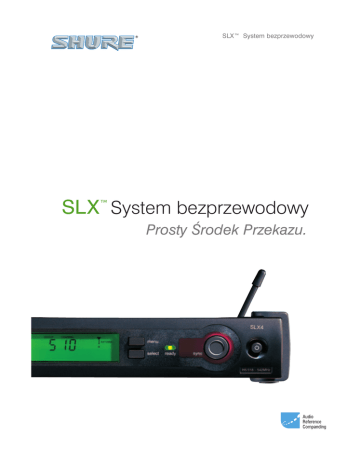 SLX™ System bezprzewodowy SLX™ System bezprzewodowy Prosty Ârodek Przekazu. SLX™ System bezprzewodowy Prosty Êrodek przekazu. W instalacjach dêwi´kowych zawsze sà potrzebne narz´dzia o du˝ych mo˝liwoÊciach, które mogà byç szybko przygotowywane do pracy i dyskretnie u˝ytkowane. Solidne systemy bezprzewodowe Shure SLX znacznie wykraczajà poza te wymogi, poniewa˝ udost´pniajà nieporównywalnà ∏atwoÊç przygotowywania i nadzwyczajnà jakoÊç dêwi´ku. Dzi´ki do∏àczanym akcesoriom mogà byç u˝ywane w instalacjach dêwi´kowych praktycznie zaraz po rozpakowaniu. A poniewa˝ dost´pny jest bogaty wybór legendarnych mikrofonów bezprzewodowych Shure, SLX udost´pnia konkretne, dedykowane rozwiàzania dla praktycznie ka˝dego zastosowania. Nieporównywalna z niczym ∏atwoÊç pracy System bezprzewodowy nie mo˝e byç ju˝ prostszy Dzi´ki nowatorskim zautomatyzowanym funkcjom przygotowanie SLX do pracy jest niek∏opotliwe, poniewa˝ do odnalezienia wolnego kana∏u i synchronizacji nadajnika z odbiornikiem wystarczy tylko wcisnàç przycisk. Automatyczny wybór cz´stotliwoÊci B∏yskawiczna lokalizacja wolnego kana∏u Automatyczne przygotowanie nadajnika Podczerwone ∏àcze automatycznie synchronizuje nadajnik z odbiornikiem and receiver Locaeahannel instantly SLX4 odbiornik SLX2 nadajnik r´czny SLX1 nadajnik paskowy Systemy bezprzewodowe Shure Nadzwyczajna jakoÊç dêwi´ku Znacznie lepsza, ni˝ w konwencjonalnych systemach bezprzewodowych Systemy bezprzewodowe SLX wykorzystujà opatentowany system kompandera Shure Audio Reference Companding, który jest prze∏omem w technologii bezprzewodowej. W przeciwieƒstwie do konwencjonalnych rozwiàzaƒ, system Audio Reference Companding wykorzystuje uk∏ady odnoszàce si´ do poziomu sygna∏u, które znaczàco poprawiajà jakoÊç dêwi´ku dzi´ki wyeliminowaniu zjawisk towarzyszàcych tradycyjnym, sta∏ym kompanderom. Zalety systemu Audio Reference Companding • Klarowniejsze brzmienie przy wszystkich poziomach audio • Brak pulsujàcych szumów • Ni˝szy poziom zak∏óceƒ • Wi´kszy zapas poziomu - mniejsze niebezpieczeƒstwo przesterowania Legendarne Mikrofony Shure Si´gajà po nie artyÊci i zawodowcy z ca∏ego Êwiata Systemy bezprzewodowe Shure SLX udost´pniajà szeroki wybór dynamicznych i pojemnoÊciowych opcji mikrofonowych, zaspokajajàcych wszelkie potrzeby, jak mikrofony r´czne, ubraniowe, nag∏owne i instrumentalne. SM58® Gotowy do pracy w instalacjach SM86 Beta 58A® Beta 87A™ Beta 87C™ System gotowy do pracy zaraz po rozpakowaniu Systemy bezprzewodowe SLX zosta∏y w pe∏ni wyposa˝one, mogàc zaspokoiç wymogi praktycznie ka˝dej instalacji • Do 12 kompatybilnych systemów na ka˝de pasmo UHF (w zale˝noÊci od kraju) • Odbiornik w metalowej obudowie z do∏àczonym osprz´tem monta˝owym do racka • Od∏àczane anteny çwierçfalowe • Do∏àczone przewody dla monta˝u anten z przodu • Blokady zasilania i cz´stotliwoÊci w nadajniku i odbiorniku • Regulacja g∏oÊnoÊci w odbiorniku z ty∏u urzàdzenia • WyjÊcia audio 1/4" i XLR SLX w ∏atwy sposób mo˝e byç integrowany z innymi produktami Shure, zapewniajàc unikatowo wszechstronne i bogate w mo˝liwoÊci rozwiàzania audio, dla praktycznie ka˝dego zastosowania. Systemy konferencyjne Procesory audio Miksery automatyczne Mikrofony instalacyjne Ods∏uchy osobiste Specyfikacja systemu Frequency Range and Transmitter Output Level Pasmo H5 J3 L4 P4 R5 S6 JB Q4 Zakres 518–542 572–596 638–662 702–726 800–820 838–865 806–810 740–752 MHz MHz MHz MHz MHz MHz MHz MHz Poziom wyjÊciowy nadajnika 30 mW/15 dBm 30 mW/15 dBm 30 mW/15 dBm 30 mW/15 dBm 20 mW/13 dBm 10 mW/10 dBm 10 mW/10 dBm 10 mW/10 dBm W∏aÊciwoÊci elementów systemu Zakres roboczy: 100 m w typowych warunkach Pasmo przenoszenia audio: Minimum: 45 Hz, maksimum: 15 kHz Ca∏kowite zniekszta∏cenia harmoniczne: Stosunek sygna∏u do szumu: Zakres temperatur roboczych: typowo 0.5%, (przy dewiacji +/– 38 kHz i sygnale 1 kHz tone) >100 dB (A-wa˝ona) od –18°C do +57°C (+/– 2 dB) UWAGA: charakterystyki baterii mogà ten zakres ograniczyç BiegunowoÊç audio nadajnika: Dodatnie ciÊnienie na membranie mikrofonu (lub dodatnie napi´cie podane na koƒcówk´ wtyku WA302) wytwarza dodatnie napi´cie na styku 2 (w odniesieniu do styku 3) wyjÊcia o niskiej impedancji i na koƒcówce wyjÊcia 1/4" o wysokiej impedancji. Specyfikacje elementów systemu Odbiornik SLX4 • • • • • • • • • • Solidna, metalowa obudowa Do∏àczony osprz´t monta˝owy do racka Od∏àczane anteny çwierç-falowe Do∏àczone przewody do monta˝u anten z przodu WyjÊcia audio1/4” i XLS Blokady zasilania i cz´stotliwoÊci w nadajniku i odbiorniku Regulacja g∏oÊnoÊci z ty∏u odbiornika PodÊwietlany wyÊwietlacz LCD Wskaêniki LED sygna∏u w.cz. i audio Pasmo 24 MHz: 960 wybieranych cz´stotliwoÊci na pasmo SLX4 Receiver Front SLX4 Receiver Back Odbiornik SLX4 Wymiary (w x s x g): Waga: Obudowa: Czu∏oÊç: Poziom wyjÊciowy audio: (w odniesieniu do dewiacji ±38 kHz sygna∏em 1 kHz) Czu∏oÊç: Zasilanie: 42 mm x 197 mm x 134 mm 0,8165 kg galwanizowana stal typowo –105 dBm dla 12 dB SINAD, typical gniazdo XLR (obcià˝enie 600 omów): +7 dBV (linia), –13 dBV (mikrofon) gniazdo 1/4” (obcià˝one 3 kiloomy): –2 dBV >typowo 70 dB 12–18 V=/150mA, z zewn´trznego zasilacza (do∏àczonego) Nadajnik r´czny lub paskowy • Bogaty wybórr´cznych mikrofonów Shure (z wymiennymi wk∏adkami) • Nadajnik paskowy wspó∏pracuje z mikrofonami nag∏ownymi, przypinanymi oraz mikrofonami i przewodami instrumentalnymi • Chwilowe podÊwietlenie wyÊwietlacza LCD • Blokada cz´stotliwoÊci i zasilacza • Wyciszanie • 2 baterie AA (w komplecie) zapewniajà 8 godzin ciàg∏ej pracy • Transmisja stanu baterii (tonem pilotujàcym) • Zasi´g roboczy 100m SLX Nadajnik r´czny SLX2 Poziom wejÊciowy audio: +2 dBV przy min.