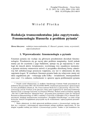 Redukcja transcendentalna jako zapytywanie. Fenomenologia