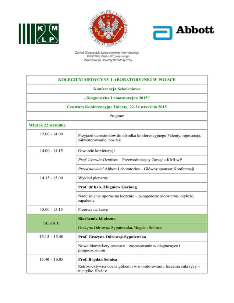 Program Konferencji - Kolegium Medycyny Laboratoryjnej