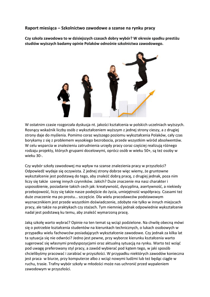 Raport miesiąca – Szkolnictwo zawodowe a szanse na rynku pracy