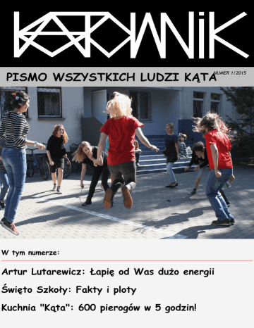 PISżO WSZYSTKICH ŻUDZI K Tś NUMER 1/2015 W tym numerze: śrtur Żutarewicz: Łapi od Was du o energii wi to Szkoły: Fakty i ploty Kuchnia "K ta": 600 pierogów w 5 godzin! SERWUS! Kątowe pismo stało się faktem! Tak sobie je wymarzyli my na początek: skromne, w stylu oldschoolowych fanzinów, zrobione wspólnymi siłami paru chętnych. Tytuł „Kątownik” – ponieważ tak nazywała się pierwsza gazetka naszej szkoły, którą wydał w grudniu 1996 roku Sapek. Możecie i ć do hostelu i zapytać go jak to wtedy było. Warszawa nie znała internetu, nikt nie miał telefonu komórkowego, a po ulicach chodziły białe niedźwiedzie. „Kąt” stał, jak stoi, niektórzy z nas byli piękni i młodzi, a czę ci z Was nie było jeszcze w planach ;) Wierzymy, że zależy Wam na istnieniu „Kątownika” w nowej odsłonie. Już sam fakt, że doczytali cie do tego fragmentu daje nam niesamowitą frajdę. Czytajcie więc dalej ;) ś może zechcecie nam pomóc? Jeste my otwarci na wszelkie propozycje: może to być rysunek, fotografia, rebus, krótszy lub dłuższy tekst. ś może jaka ciekawostka z życia „Kąta” albo co co Was pasjonuje? Zjada nas ciekawo ć, czym nas zaskoczycie. Nie potrafi siedzieć na tyłku w gabinecie Rozmawiamy z Arturem Lutarewiczem, szkolnym psychologiem, jednym z pierwszych K towych wychowawców. Turbo: śrturĘ jak trafiłe do K ta? Artur: To była do ć specyficzna sytuacja. Był początek października, przyjechałem do Warszawy na czwarty rok studiów. Znajomy mi powiedział: „śrtur, jest nowa szkoła dla takiej dziwnej młodzieży, potrzebują wychowawcy. Ty się dziwnie ubierasz, może by poszedł?”. Nigdy nie my lałem o pracy z młodzieżą ale ten kolega mnie bardzo namawiał, więc postanowiłem spróbować. Dotarłem na miejsce, dopadli mnie jacy punkowcy i krzyczeli „o, nasz nowy wychowawca, nasz nowy wychowawca”. No i tak zostałem. To było 23 lata temu. Przez cztery lata N w byłem wychowawcą, w międzyczasie skończyłem T studia, zostałem magistrem psychologii i dostałem 1 T: Jak w Twoich oczach zmienił si K t na przestrzeni tych dwudziestu trzech lat? A: Dla mnie różnica polega przede wszystkim na tym, że w ‘92 byłem w wieku niektórych obecnych uczniów. W pierwszej klasie miałem ucznia, który był ode mnie 3 lata młodszy. Tamta młodzież była mi bardziej bliska zainteresowaniami, pomysłami. Ile ich do wiadczeń było moimi do wiadczeniami, bo, tak jak powiedziałem, różnica wiekowa była prawie żadna. Teraz nie znam się na rzeczach, na których Wy się znacie. Na przykład w ogóle nie interesuję się grami komputerowymi, nie używam facebooka. Wtedy też mieli my tutaj takich naprawdę odstających ludzi; my lę, że czę ć obecnych Kątowiczów przy jakim dobrym systemie szkolnym – większej uwadze, mniejszych klasach – radziłaby sobie w masowych szkołach. W k N k G H Ł W i k Dzi na pewno mamy więcej dzieci z zaburzeniami psychicznymi, ale to raczej kwestia tego, że w tej chwili zdecydowanie czę ciej diagnozuje się różnego rodzaju problemy. Wtedy generalnie bardzo rzadko korzystali my z pomocy psychiatrów, po prostu nie było takiego zwyczaju, no chyba że komu rzeczywi cie zupełnie odwalało. Teraz już wiemy, że z niektórymi rzeczami nie ma na co czekać, bo od tego są specjali ci na zewnątrz. T: Co najbardziej wzrusza ci w K cie? A: Na pewno bardzo wzrusza mnie to, że odwiedzają nas uczniowie sprzed lat. Przysyłają tu swoje dzieci, wpadają na różne więta, bez okazji też przychodzą. Pamiętam jak ogłosili my, że popsuła się pralka w hostelu i potrzebujemy nowej. Odezwał się dawny uczeń, dał nam tę pralkę i powiedział, że on tu dużo dostał, więc teraz chce dać co od siebie. No i wtedy serce ro nie. Przyjemnie mi widzieć jak dzieciaki nie idą po lekcjach do domu, zostają trochę dłużej. I to nawet nie z kolegami, a z nami, z kadrą. To jako pokazuje że jest im tu dobrze i bezpiecznie. Mam też takie wzruszające wspomnienie z czerwca '93. Był koniec roku szkolnego, nie przypomnę sobie teraz czemu, ale zostałem ostatni w szkole. Pamiętam taki obraz – gorące popołudnie, pusta szkoła z pootwieranymi drzwiami i oknami, na podłodze jeszcze jakie walające się papierki. Taki intensywny rok i nagle pusto, nikogo nie ma. Jako się wtedy strasznie wzruszyłem. T: Jak si czujesz z wizerunkiem szkolnego mieszka? A: Jeżeli moje mieszkowanie nie sprawia nikomu przykro ci, no to ok. Nikt na razie nie powiedział, że mu to przeszkadza. Generalnie jestem energiczną osobą, jako nie potrafię siedzieć na tyłku w gabinecie. Na pewno dużo entuzjazmu i energii łapię też od Was. To fajne, że możemy sobie razem pobyć i pogadać o pierdołach, psycholog nie kojarzy się wtedy tylko z jakimi problemami. Rozmawiała: śleksandra Korejwo (klasa III ErEl) Na tegorocznym JEDLI, GRALI, KUPOWALI wi cie Szkoły mo na było dobrze podje ćĘ zamienić si na chwil w dyrektora Łukasza albo po prostu nacieszyć pi kn wrze niow pogod . Tym razem więtowali my 23. urodziny „Kąta”. Piątek 18 wrze nia nie był normalnym dniem lekcyjnym – szkolne sale opustoszały już przed godziną 11 i przenie li my się przed budynek. W sali kominkowej trwał kiermasz. Za symboliczną kwotę chętni kupowali ciuchy, płyty, mydło i powidło. – Pod względem zarobku był to najsłabszy kiermasz od kilku lat – podsumowały organizujące go śnia i Marta. – Zarobiły my około 400 zł. Pieniądze te zasilą szkolne konto dla potrzebujących. Nie miały my serca zdzierać większych sum od ludzi, stąd tak skromny urobek. W poprzednich latach zdarzało się zbierać i po 1000 zł – komentowały organizatorki. Ubrania, których nie udało się sprzedać, zostały oddane do Domu Pomocy Społecznej w Międzylesiu. Główna czę ć obchodów więta „Kąta” odbywała się przed budynkiem szkoły. Na trawniku stanął stolik z loterią, a obok niego mównica rodem z Hy