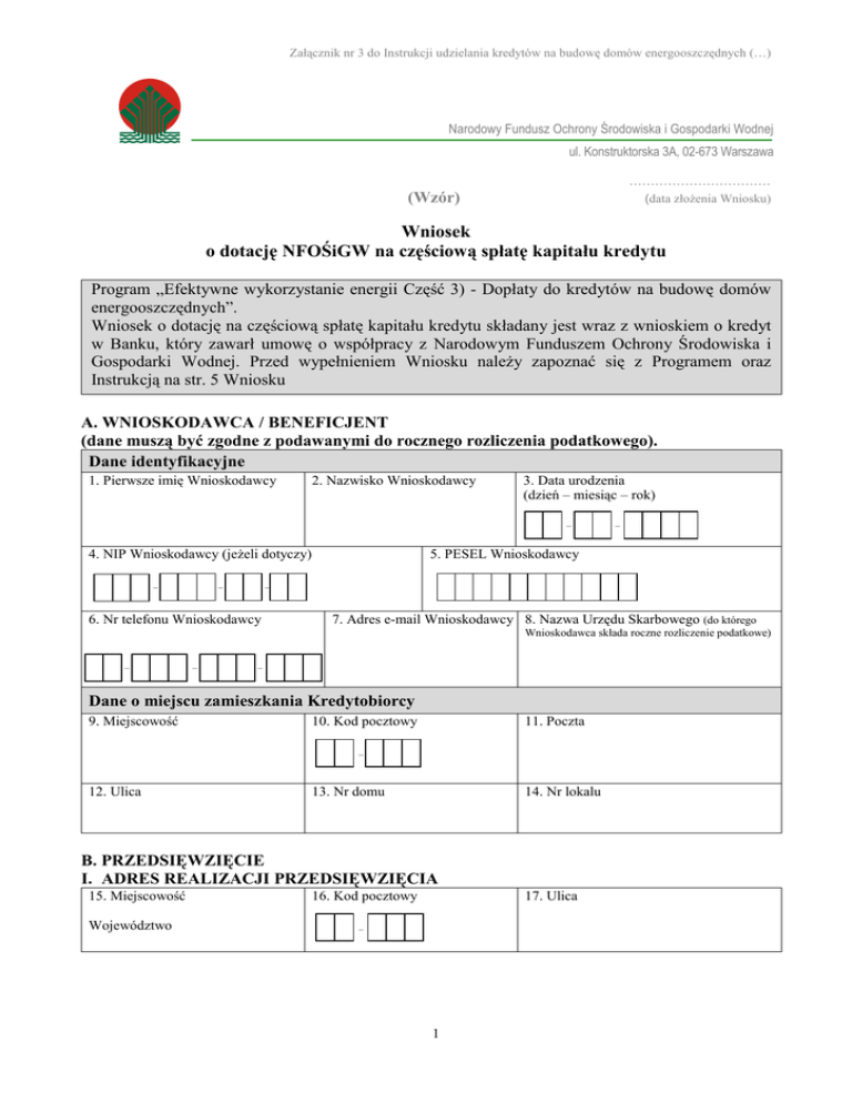 załącznik nr 3 - WNIOSEK O DOTACJĘ NFOŚIGW