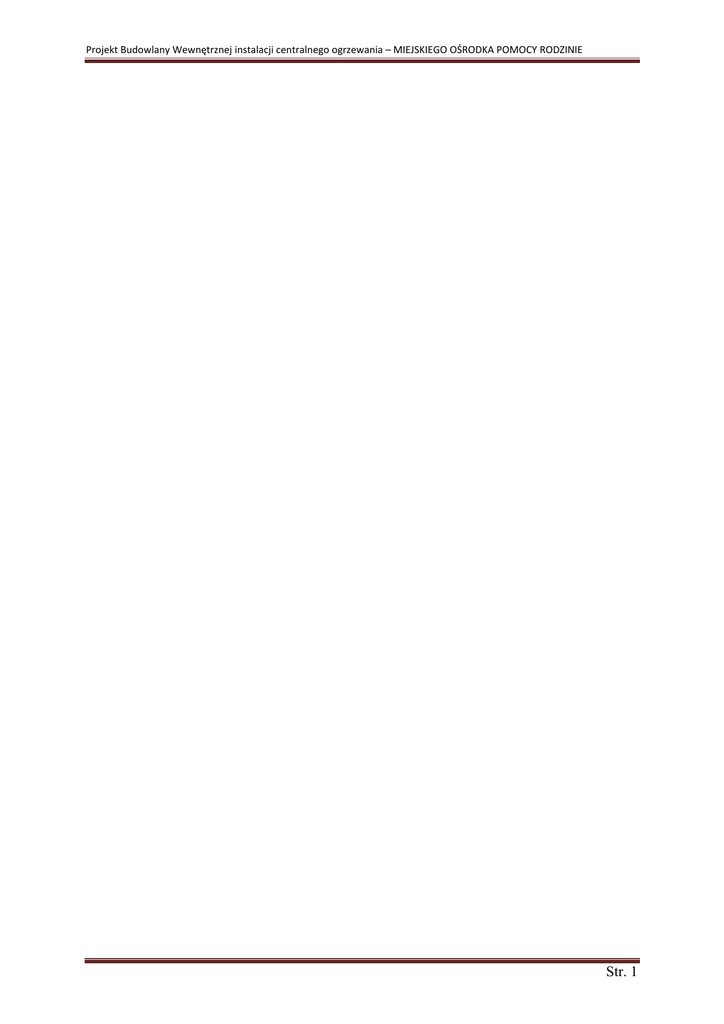 Projekt Budowlany Wewnętrznej instalacji centralnego ogrzewania – MIEJSKIEGO OŚRODKA POMOCY RODZINIE Str. 1 Projekt Budowlany Wewnętrznej instalacji centralnego ogrzewania – MIEJSKIEGO OŚRODKA POMOCY RODZINIE Zawartość opracowania I. CZĘŚĆ OPISOWA .............................................................................................................................................. 3 PROJEKT BUDOWLANY ................................................................................................................................ 4 1. Dane ogólne ................................................................................................................................................ 4 1.1. Przedmiot opracowania. ...................................................................................................... 4 1.2. Zakres opracowania.............................................................................................................. 4 1.3. Podstawa opracowania projektu.......................................................................................... 4 2. Charakterystyka budynku ............................................................................................................................ 4 3. Instalacja centralnego ogrzewania............................................................................................................... 5 3.1. Opis instalacji centralnego ogrzewania. ............................................................................... 5 3.2. Rurociągi. .............................................................................................................................. 5 3.3. Grzejniki. ............................................................................................................................... 5 3.4. Odpowietrzenie instalacji. .................................................................................................... 6 3.5. Armatura i osprzęt. ............................................................................................................... 6 3.6. Płukanie i próby. ................................................................................................................... 6 3.7. Izolacja antykorozyjna i cieplna. ........................................................................................... 7 3.8. Uwagi montażowe i eksploatacyjne. .................................................................................... 7 4. Informacja BIOZ ......................................................................................................................................... 8 Oświadczenie projektanta ............................................................................................................................. 10 Uprawnienia i wpis do Izby projektanta – Jarosław Sikora .......................................................................... 11 II. CZĘŚĆ OBLICZENIA ............................................................................................................................ 14 − III. Obliczenia instalacji C.O. .................................................................................................................... 15 CZĘŚĆ RYSUNKOWA .......................................................................................................................... 23 − Rzut parteru – instalacja c.o. − Rozwinięcie instalacji c.o. Rys. S/1 ............................................................................................. 24 Rys. S/2 ............................................................................................... 25 Str. 2 Projekt Budowlany Wewnętrznej instalacji centralnego ogrzewania – MIEJSKIEGO OŚRODKA POMOCY RODZINIE I. CZĘŚĆ OPISOWA Str. 3 Projekt Budowlany Wewnętrznej instalacji centralnego ogrzewania – MIEJSKIEGO OŚRODKA POMOCY RODZINIE PROJEKT BUDOWLANY dla zadania: „ROZBIÓRKA PIWNICY, PRZEBUDOWA BUDYNKU SEGMENTU ŻYWIENIOWEGO PRZY ZSP NR 2, ZMIANA SPOSOBU UŻYTKOWANIA POMIESZCZEŃ KUCHNI I STOŁÓWKI NA POMIESZCZENIA BIUROWE MIEJSKIEGO OŚRODKA POMOCY RODZINIE” - Projekt wewnętrznej instalacji centralnego ogrzewania 1. Dane ogólne 1.1. Przedmiot opracowania. Przedmiotem opracowania jest projekt budowlany i wykonawczy „Wewnętrznej instalacji centralnego ogrzewania – MIEJSKIEGO OŚRODKA POMOCY RODZINIE” w Siedlcach przy ul. O. Lange 6 (działka nr geod. 28/43 obręb 44). Inwestorem w/w zadania jest Miasto Siedlce mieszczące się przy Skwerze Niepodległości 2; 08-110 Siedlce. 1.2. Zakres opracowania. W zakresie niniejszego opracowania wchodzi: − Projekt instalacji centralnego ogrzewania. 1.3. Podstawa opracowania projektu. [1]. Projekt architektoniczno – budowlany, [2]. Uzgodnienia z Inwestorem, [3]. Warunki techniczne, [4]. Wytyczne technologiczne, [5]. Obowiązujące przepisy i normy. 2. Charakterystyka budynku Projektowana zmiana sposobu użytkowania pomieszczeń kuchni i stołówki na pomieszczenia biurowe Miejskiego Ośrodka Pomocy Rodzinie będzie polegała na przebudowie i zaadoptowaniu istniejących pomieszczeń. Istniejący budynek jest jednokondygnacyjny o powierzchni użytkowej około 276,9m2. Konstrukcja budynku jest tradycyjna ściany zewnętrzne nośne, stropy żelbetowe, dach wsparty na ścianach nośnych budynku. Str. 4 Projekt Budowlany Wewnętrznej instalacji centralnego ogrzewania – MIEJSKIEGO OŚRODKA POMOCY RODZINIE Podłoga betonowa, zaizolowana termicznie w I strefie. Ściany zewnętrzne wykonane będą z muru zaizolowanego z zewnątrz termicznie płytami styropianowymi grubości 15cm. 3. Instalacja centralnego ogrzewania 3.1. Opis instalacji centralnego ogrzewania. Instalacja centralnego ogrzewania pompowa z rozdziałem dolnym, której czynnikiem grzejnym będzie woda, powinna być zabezpieczona zamkniętym naczyniem wzbiorczym przeponowym, oraz zaworem bezpieczeństwa zgodnie z PN–B–02414:1999. Inst