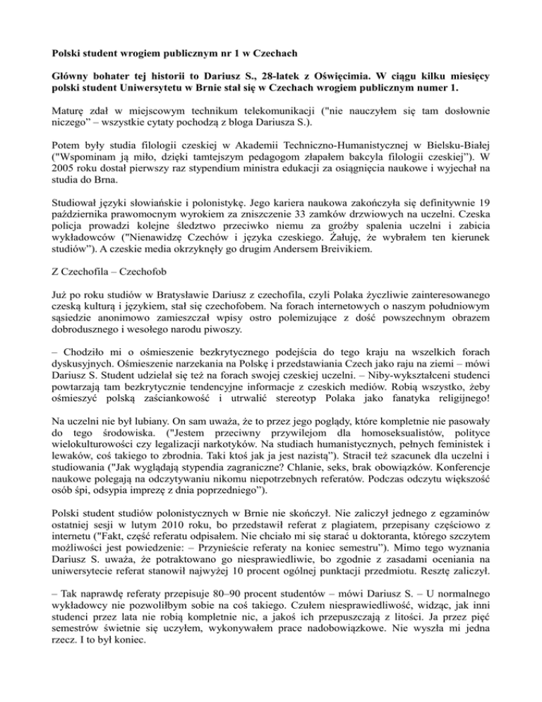 polski student Uniwersytetu w Brnie stał się w Czechach wrogiem publicznym numer 1.