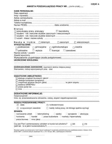 ANKIETA POSZUKUJĄCEGO PRACY NR …(nr