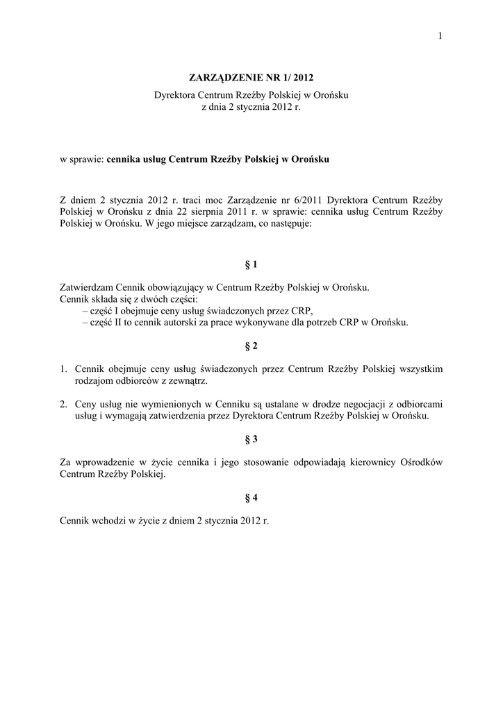 zarządzenie nr 1/ 2012 - Centrum Rzeźby Polskiej w Orońsku