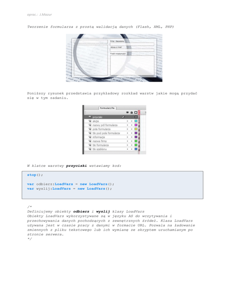 oprac.: J.Mazur Tworzenie formularza z prostą