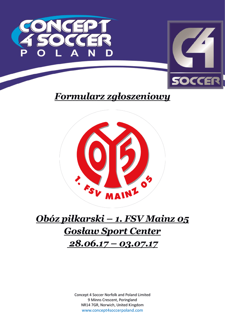 Formularz zgłoszeniowy Obóz piłkarski – 1. FSV Mainz 05 Gosław