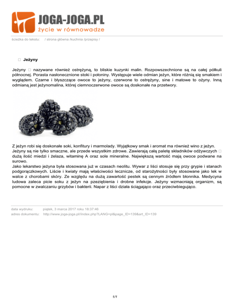 Jeżyny Jeżyny nazywane również ostrężyną, to bliskie - Joga-Joga