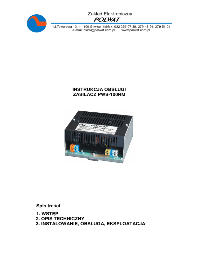 INSTRUKCJA OBSŁUGI ZASILACZ PWS