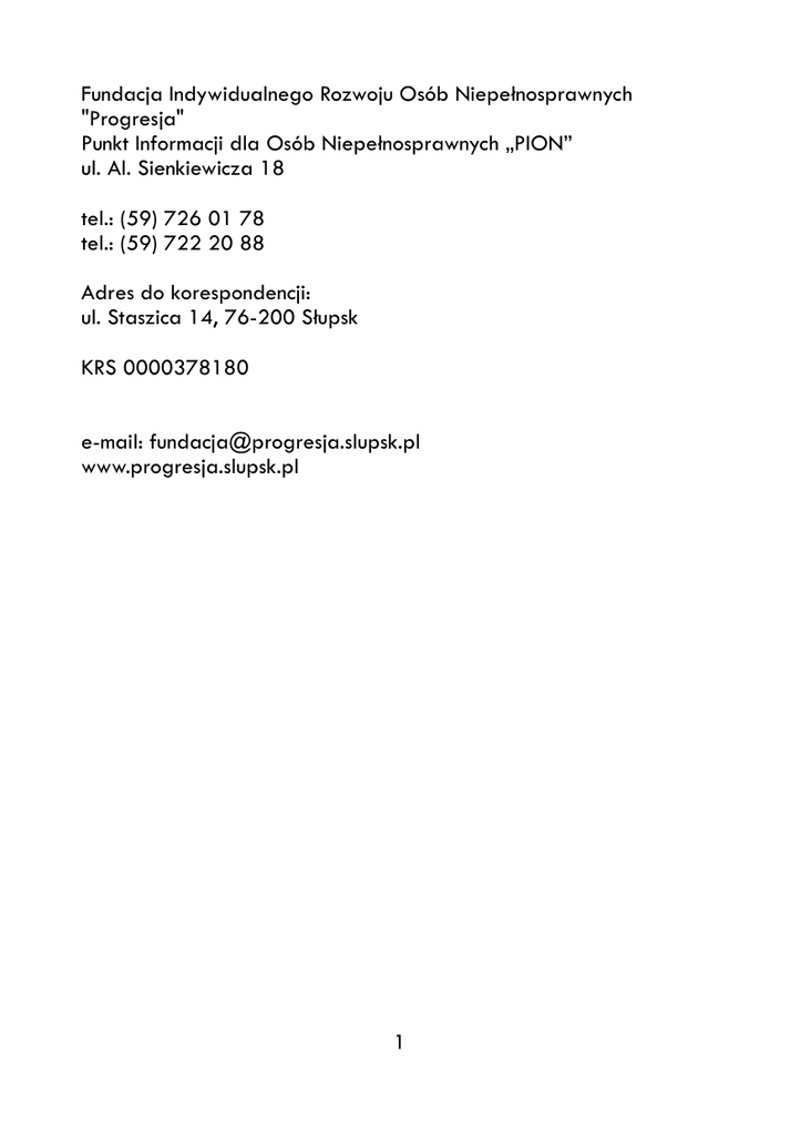 Fundacja Indywidualnego Rozwoju Osób Niepełnosprawnych "Progresja" Punkt Informacji dla Osób Niepełnosprawnych „PION” ul. Al. Sienkiewicza 18 tel.: (59) 726 01 78 tel.: (59) 722 20 88 Adres do korespondencji: ul. Staszica 14, 76-200 Słupsk KRS 0000378180 e-mail: [email protected] www.progresja.slupsk.pl 1 Spis treści 1. CZYM JEST NIEPEŁNOSPRAWNOŚĆ?.....................................................3 1.1. Stopnie niepełnosprawności........................................................3 1.2. Symbole przyczyn niepełnosprawności....................................4 2. DOFINANSOWANIE DO WYNAGRODZEŃ..........................................5 2.1. Podmioty uprawnione do ubiegania się o dofinansowanie do wynagrodzeń niepełnosprawnych pracowników............................5 2.2. Wysokość dofinansowania .........................................................6 2.3. Procedura rejestracji pracodawcy w Systemie Obsługi Dofinansowań i Refundacji...................................................................9 2.4. Procedura uzyskiwania dofinansowania do wynagrodzenia niepełnosprawnego pracownika......................................................10 3. ZWROT KOSZTÓW WYPOSAŻENIA STANOWISKA PRACY OSOBY NIEPEŁNOSPRAWNEJ ...................................................................14 3.1. Podmioty uprawnione do uzyskania pomocy.......................14 3.2. Wysokość dofinansowania........................................................14 3.3. Procedura ubiegania się o pomoc..........................................15 3.4. Przydatne informacje ...............................................................15 4. ZWROT KOSZTÓW PRZYSTOSOWANIA STANOWISKA PRACY DLA OSOBY NIEPEŁNOSPRAWNEJ...........................................................16 4.1. Podmioty uprawnione do uzyskania pomocy.......................16 4.2. Wysokość pomocy......................................................................17 4.3. Procedura ubiegania się o pomoc .........................................17 5. ZWROT KOSZTÓW SZKOLENIA PRACOWNIKA NIEPEŁNOSPRAWNEGO..............................................................................18 5.1. Wysokość pomocy......................................................................18 6. ADRESY ZAKŁADÓW UBEZPIECZEŃ SPOŁECZNYCH W WOJ. POMORSKIM.................................................................................21 7. ADRESY ODDZIAŁÓW URZĘDÓW PRACY W WOJ. POMORSKIM.................................................................................21 8. ADRESY ODDZIAŁÓW PFRON W WOJ. POMORSKIM...................23 9. ADRESY ORGANIZACJI DZIAŁAJĄCYCH NA RZECZ OSÓB NIEPEŁNOSPRAWNYCH W SŁUPSKU.......................................................24 2 1. CZYM JEST NIEPEŁNOSPRAWNOŚĆ? Definicja ogólna (medyczna) Niepełnosprawną jest osoba, której stan fizyczny i/lub psychiczny, trwale lub okresowo utrudnia, ogranicza lub uniemożliwia wypełnianie zadań życiowych i ról społecznych zgodnie z normami prawnymi i społecznymi.1 Osoba niepełnosprawna jest jednostką w pełni swych praw znajdującą się w upośledzającej ją sytuacji, stworzonej przez bariery środowiskowe, ekonomiczne i społeczne, których nie może (tak jak inni ludzie) przezwyciężyć wskutek występujących w niej uszkodzeń. 1.1. Stopnie niepełnosprawności. Znaczny - zalicza się do niego osobę z naruszoną sprawnością organizmu, niezdolną do pracy albo zdolną do pracy jedynie w warunkach pracy chronionej i wymagającą, w celu pełnienia ról społecznych, stałej lub długotrwałej opieki i pomocy innych osób w związku z niezdolnością do samodzielnej egzystencji. Umiarkowany - zalicza się do niego osobę z naruszoną sprawnością organizmu, niezdolną do pracy albo zdolną do pracy jedynie w warunkach pracy chronionej, lub wymagającą czasowej albo częściowej pomocy innych osób w celu pełnienia ról społecznych. 1 Definicja według Ustawy o rehabilitacji społecznej i zawodowej oraz zatrudnianiu osób niepełnosprawnych (Dz. U. z 1997, nr 123, poz. 776 z późn. zm.) 3 Lekki - zalicza się do niego osobę o naruszonej sprawności organizmu, powodującej w sposób istotny obniżenie zdolności do wykonywania pracy, w porównaniu do zdolności, jaką wykazuje osoba o podobnych kwalifikacjach zawodowych z pełną sprawnością psychiczną i fizyczną, lub mającą ograniczenia w pełnieniu ról społecznych dające się kompensować przy pomocy wyposażenia w przedmioty ortopedyczne, środki pomocnicze lub środki techniczne.2 1.2. Symbole przyczyn niepełnosprawności 01-U - upośledzenie umysłowe; 02-P - choroby psychiczne; 03-L - zaburzenia głosu, mowy i choroby słuchu; 04-O - choroby narządu wzroku; 05-R - upośledzenie narządu ruchu; 06-E - epilepsja; 07-S - choroby układu oddechowego i krążenia; 08-T - choroby układu pokarmowego; 09-M - choroby układu moczowo-płciowego; 10-N - choroby neurologiczne; 11-I - inne, w tym schorzenia: endokrynologiczne, metaboliczne, zaburzenia enzymatyczne, choroby zakaźne i odzwierzęce, zeszpecenia, choroby układu krwiotwórczego. 12-C - całościowe zaburzenia rozwojowe. 2 (Art. 4 ust. 3. ustawy z dnia 27 sierpnia 1997 r. o rehabilitacji zawodowej i społecznej oraz zatrudnianiu osób niepełnosprawnych (Dz.U. z dnia 9 października 1997 r., Nr 123, poz.776 z późn. zm.). 4 WAŻNE! Do schorzeń specjalistycznych zalicza się: 01-U, 02-P, 04-O, 06-E, 12-C 2. DOFINANSOWANIE DO WYNAGRODZEŃ 2.1. Podmioty uprawnione do ubiegania się o dofinansowanie do wynagrodzeń niepełnosprawnych pracowników. Każdemu pracodawcy, który zatrudnia osoby niepełnosprawne, przysługuje miesięczne dofinansowanie do wynagrodzenia takiego pracownika ze środków Państwowego Funduszu Rehabilitacji Osób Niepełnosprawnych, pod warunkiem, że pracownik został ujęty w ewidencji zatrudnionych osób niepełnosprawnych prowadzonej przez Fundusz. O dofinansowanie ubiegać się może pra