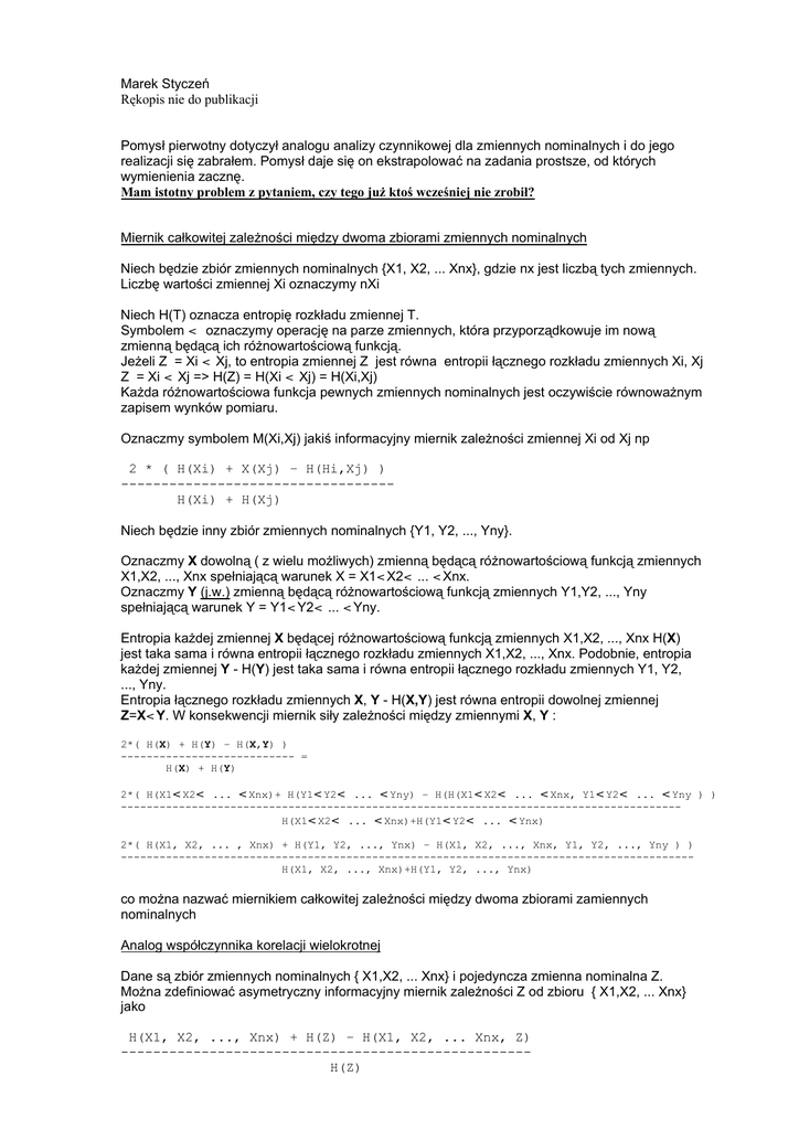 Można zdefiniować asymetryczny informacyjny miernik zależności Z od zbioru { X1,X2, ... Xnx}