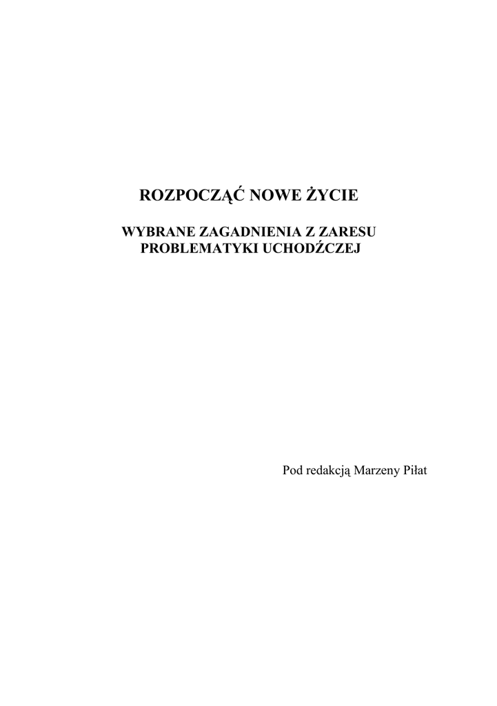ROZPOCZĄĆ NOWE ŻYCIE WYBRANE ZAGADNIENIA Z ZARESU PROBLEMATYKI UCHODŹCZEJ Pod redakcją Marzeny Piłat 2 Spis treści Przedmowa ………………………………………..................................... 5 Marzena Piłat Konsekwencje cierpień spowodowanych wojną i prześladowaniami …....... 7 Monika Budka oraz Dział Analiz i Sprawozdawczości Miejskiego Ośrodka Pomocy Rodzinie w Lublinie Świadczenia z pomocy społecznej dla cudzoziemców …............................ 16 Ważne adresy ……………………………………………......................... 27 3 Publikacja współfinansowana ze środków Europejskiego Funduszu Uchodźczego. Komisja Europejska nie ponosi odpowiedzialności za sposób wykorzystania udostępnionych informacji, a wyłączna odpowiedzialność za publikacje spoczywa na jej autorze. Noty o autorkach Monika Budka pracownik socjalny MOPR w Lublinie, od 6 lat pracuje z uchodźcami Marzena Piłat psycholog CPMIU w Lublinie od 12 lat pracuje z uchodźcami i migrantami Projekt okładki Marzena Piłat Na okładce wykorzystano rysunek Martynki, uczennicy VI kl. SP nr 23 w Lublinie, wyróżniony w ogólnopolskim konkursie plastycznym pt. „Mój Kolega Polak – Mój Kolega Cudzoziemiec” ogłoszonym przez Caritas Polska w ramach Międzynarodowego Dnia Uchodźcy 2006 r. Copyright by Caritas Polska Lublin 2007 Publikacja wydana na zlecenie Caritas Polskiej ISBN 978-83-89616-26-5 Wydawca AKAPIT s.c. ul. Węglowa 3, 20-481 Lublin tel. (0 81) 749 00 62, e-mail: [email protected] Druk i oprawa AKAPIT s.c., ul. Węglowa 3, 20-481 Lublin tel. (0 81) 749 00 62, e-mail: [email protected] 4 Przedmowa Publikacja niniejsza jest skierowana przede wszystkim do cudzoziemców, szukających w Polsce schronienia przed prześladowaniami, a więc do osób ubiegających się o nadanie statusu uchodźcy, uznanych uchodźców i cudzoziemców posiadających zgodę na pobyt tolerowany. Ludzie ci z niepokojem obserwują, iż mimo znalezienia się w bezpiecznym miejscu, stan ich zdrowia psychicznego i fizycznego nie ulega poprawie, a w niektórych przypadkach nawet się pogarsza. Szczególnie trudno jest im zapanować nad lękiem, gniewem i apatią. Po długim, bezczynnym pobycie w ośrodku okazuje się, że konieczność życia na własny rachunek w obcym kraju przysparza wielu zaskakujących problemów, jest irytująca i uciążliwa. Pesymistyczna ocena przyszłości, odmienność kulturowa i nieznajomość języka dodatkowo utrudniają adaptację do nowych warunków. W opracowaniu tym poruszono kwestie dotyczące psychologicznych problemów uchodźców, nie tylko w oparciu o literaturę przedmiotu, ale także o doświadczenia zebrane w trakcie bezpośredniej pracy z kilkoma tysiącami azylantów, pochodzących z Europy, Azji i Afryki. Osoby te przełamując barierę wstydu i lęku, postanowiły szukać pomocy psychologicznej mimo, że w ich krajach ten rodzaj wsparcia nie istniał lub też był częścią systemu represji. Można powiedzieć, że swoją odwagą „przetarły szlaki” innym pacjentom-uchodźcom, którzy obecnie śmielej korzystają z profesjonalnego wsparcia psychologicznego oraz w większym stopniu dostrzegają związek między tragicznymi doświadczeniami swego życia a problemami zdrowotnymi. W publikacji zebrano też wiadomości z zakresu pomocy społecznej, niezbędne wszystkim cudzoziemcom, osiedlającym się w Polsce, oraz podano adresy instytucji pomagających migrantom. Informator ten powstał w ramach grantu z Europejskiego Funduszu Uchodźczego, jaki Caritas Polska otrzymała w 2006 roku. W strukturach Caritas, nieprzerwanie od 12 lat, działają Centra Pomocy Migrantom i Uchodźcom, które wspierają cudzoziemców niezależnie od ich religii, narodowości, statusu prawnego czy społecznego. Służą bezpłatną pomocą psychologiczną, socjalną i prawną. W ramach zadań Centrów organizowane są lekcje języka polskiego i angielskiego, pomoc w nauce, zajęcia aktywizacyjne czy imprezy okolicznościowe. Najbardziej potrzebujący uchodźcy zapatrywani są w niezbędne artykuły higieniczne, szkolne, żywność, leki czy odzież. Wszystkie te działania zmierzają do wpierania trudnego procesu integracji społecznej cudzoziemców. 5 Istotnym elementem działalności Centrów Pomocy Migrantom i Uchodźcom Caritas są akcje i kampanie edukacyjne, skierowane do dzieci, młodzieży oraz dorosłych. Mają one na celu przeciwdziałanie dyskryminacji oraz wykluczeniu społecznemu cudzoziemców. Przy wsparciu Katedry Psychoterapii i Psychologii Zdrowia KUL prowadzone są również badania naukowe, dotyczące wpływu stresu posttraumatycznego na kondycję psychiczną, funkcjonowanie społeczne uchodźców oraz przebieg procesu integracji. Mam nadzieję, że publikacja ta okaże się przydatna zarówno uchodźcom, jak i wszystkim pracującym z nimi osobom. Psychologiczne przyczyny zaburzeń funkcjonowania społecznego - występujące u ofiar prześladowań - często są bowiem źródłem nieporozumień i napięć we wzajemnych kontaktach. Marzena Piłat 6 Konsekwencje cierpień spowodowanych wojną i prześladowaniami Nieszczęścia spotykające ludzi, którzy muszą opuścić swoją ojczyznę w obawie przed utratą życia, są powodem zaburzeń zdrowia psychicznego i fizycznego. Badacze diagnozują u uchodźców wiele zaburzeń psychicznych, takich jak depresja, zespół stresu pourazowego (PTSD), wyczerpanie walką, reakcje żałoby1. Odnotowują próby samobójcze czy uzależnienie od alkoholu, leków i narkotyków. Skrajny stres środowiskowy pozostawia też ślady w postaci tzw. chorób psychosomatycznych, jak chociażby choroba wieńcowa, wrzodowa, nadciśnienie tętnicze, zaburzenia odżywiania, snu, zaburzenia seksualne, niektóre rodzaje alergii2. Jego wpływ na powstawanie czy zaostrzanie się już trwającego procesu chorobowego nie pozostawia wątpliwości. Pionierskie badania fizjologów ujmowały stres jako odpowiedź na sytuację zagroż