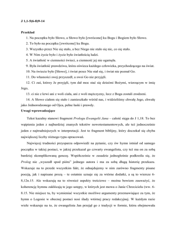 J 1,1-5(6-8)9-14 Przekład 1. Na początku było Słowo