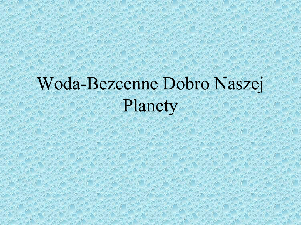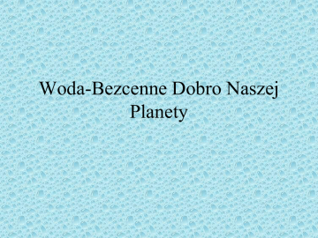 Woda-Bezcenne Dobro Naszej Planety