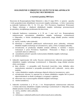 ogłoszenie o zbędnych składnikach majątku.