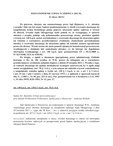 1 POSTANOWIENIE Z DNIA 9 CZERWCA 2011 R., II AKzw 303/11
