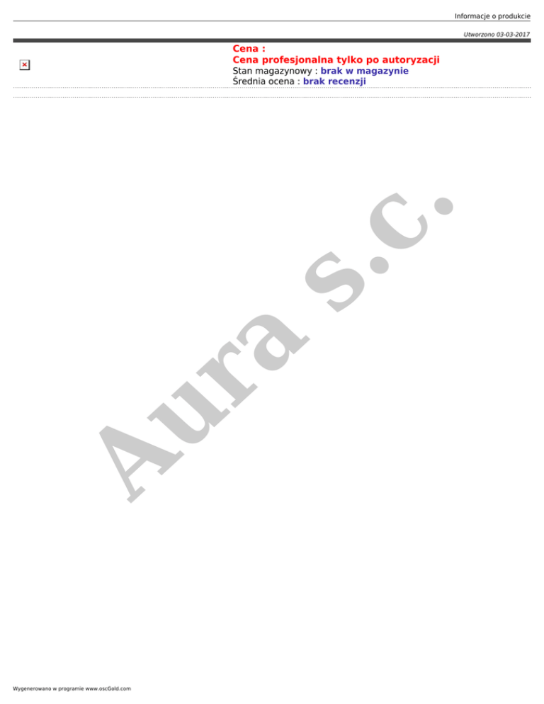Informacje o produkcie Utworzono 03-03-2017 Cena : Cena profesjonalna tylko po autoryzacji Au r a s. c. Stan magazynowy : brak w magazynie Średnia ocena : brak recenzji Wygenerowano w programie www.oscGold.com