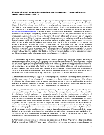 1 Zasady rekrutacji na wyjazdy na studia za granicą w ramach