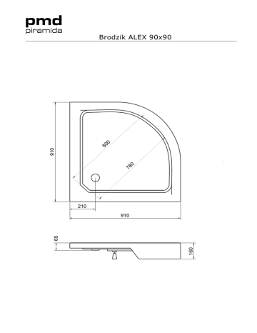 78 0 910 80 0 Brodzik ALEX 90x90 210 160 65 910