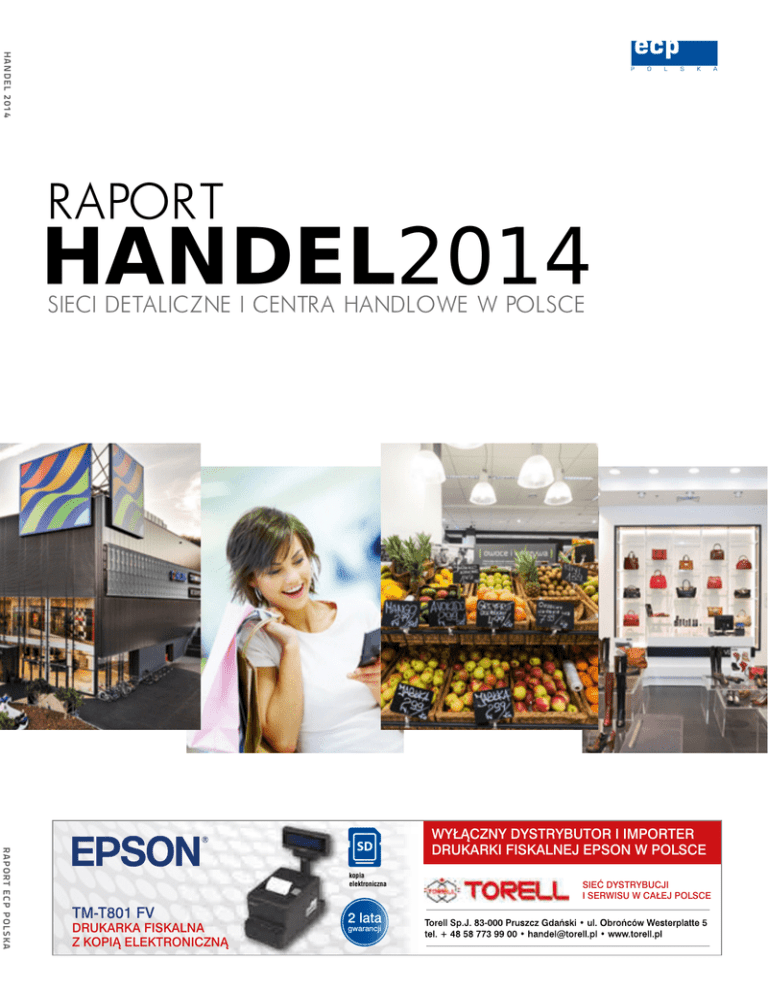 H AN DEL 2014 RAPORT HANDEL2014 SIECI DETALICZNE I CENTRA HANDLOWE W POLSCE RAP ORT E CP PO LSK A SD kopia elektroniczna TM-T801 FV DRUKARKA FISKALNA Z KOPIĄ ELEKTRONICZNĄ 2 lata gwarancji WYŁĄCZNY DYSTRYBUTOR I IMPORTER DRUKARKI FISKALNEJ EPSON W POLSCE SIEĆ DYSTRYBUCJI I SERWISU W CAŁEJ POLSCE Torell Sp.J. 83-000 Pruszcz Gdański • ul. Obrońców Westerplatte 5 tel. + 48 58 773 99 00 • [email protected] • www.torell.pl VI MIĘDZYNARODOWE TARGI WYPOSAŻENIA TECHNOLOGII I USŁUG DLA HANDLU EXHIBITION & EXHIBITION & CONFERENCE Targom towarzyszą 2015 Organizator RETAIL CONGRES ONGRESSS 2015 2015 www.retailshow.pl 18-19.11.2015 EXPO XXI Warszawa W R APO R CIE H AN DEL 2014: SIECI HANDLOWE 04 08 10 12 15 18 Trendy, zmiany i potencjał Dynamiczne convenience Ekspansja i inwestycje Tabela: SIECI HANDLOWE W POLSCE Zmiany i wyzwania Koncepty franczyzowe w handlu i gastronomii CENTRA HANDLOWE 20 22 30 32 34 36 44 Potencjał regionów Tabela: CENTRA HANDLOWE W POLSCE Rynek najemcy z potencjałem Czas dojrzewania Rozwój nowych formatów Centra handlowe w budowie i modernizacji anufaktura postanowienia i podsumowania KLIENT 46 48 50 52 Preferencje, wygoda i mobilne trendy Przybywa konsumentów luksusu Poznaj potrzeby konsumentów Projektowanie dobrej pamięci FMCG 53 54 Ceny w koszyku Rok 2014 na rynku FMCG WYPOSAŻENIE, TECHNOLOGIE, USŁUGI 56 57 58 60 64 65 66 68 70 73 Wydawca ECP Polska Sp. z o.o. Sp. k. ul. Toeplitza 2 lok. 84, 01-560 Warszawa tel. +48 22 865-04-35, faks +48 22 865-04-41 e-mail: [email protected] www.retailshow.pl arketing trendy i strategie ERP zadomowione w handlu Sprzedawać nowocześnie i prosto Przyjemność i świadomość upełnie nowe pomysły Jak światło zdobi szatę wieże spojrzenie na żywność by zakupy były bezpieczne Nowości Wizytówki firm Redaktor naczelna Marzena Szulc tel. +48 22 865-04-36 Dyrektor działu sprzedaży Artur Matlakowski tel. +48 22 865-04-40 Dyrektor marketingu Wojciech Smoktunowicz tel. +48 22 865-04-42 Opracowanie graficzne i DTP Tomasz Drążek Fotografia na okładce: Archiwum a. ARTKOM Wydawca nie ponosi odpowiedzialności za treść materiałów reklamowych. Przedruk lub reprodukcja wyłącznie za pisemną zgodą Wydawcy. © ECP Polska Sp. z o.o. Sp. k. All rights reserved. 4 | S I E CI H ANDL OWE RYNEK SPOŻYWCZY W POLSCE 2014 Trendy, zmiany i potencjał Eksperci z agencji Inquiry Market Research przygotowali podsumowanie najważniejszych wydarzeń w polskim handlu detalicznym w 2014 roku Z P Rok 2014 nie obfitował w tak spektakularne transakcje, jak przejęcie sieci Real przez uchan rok wcześniej. imo to w polskim handlu detalicznym nie brakowało istotnych posunięć, które świadczą o postępującej konsolidacji w segmencie supermarketów - nie tylko wśród największych sieci. W ubiegłym roku odnotowano m.in. przejęcie przez urocash udziałów w firmie Rogala, swojego dotychczasowego franczyzobiorcy prowadzącego 50 sklepów pod szyldem elikatesy entrum. urocash nie wyklucza w przyszłości podobnych transakcji z innymi swoimi partnerami o stabilnej pozycji rynkowej. irma objęła także pakiet kontrolny w sieci salonów prasowych Inmedio. kolei sieć sklepów detalicznych abka przejęła krakowską sieć Kefirek, liczącą około 30 sklepów, jednocześnie otwierając kilkaset nowych sklepów własnych i franczyzowych pod szyldami abka i reshmarket. Wśród dyskontów szczególnie aktywna była Biedronka, która przejęła kolejnych 11 sklepów arcpolu (w 2011 przejęła pierwsze 9 placówek). Innym ważnym wydarzeniem był podział Polomarketu w sierpniu 2014 roku decyzję o uruchomieniu własnej marki podjął arket- etal, do którego należało 167 placówek, które od stycznia 2015 roku będą funkcjonowały pod nowym szyldem ila. Dla hipermarketów e-commerce może stać się próbą ratowania spadających obrotów i zatrzymania klientów. Ponadto w czerwcu 2014 r. Polomarket przystąpił do rupy andlowej P Plus. Jest to stosunkowo nowy podmiot na rynku, zainicjowany w 2013 przez Bać-Pol, sieci Piotr i Paweł oraz Topaz, jednak dopiero w zeszłym roku rozwój rupy nabrał rozpędu. o końca 2015 planuje ona skupić wokół siebie przynajmniej 2,5 tys. tradycyjnych detalistów, co ma być przeciwwagą dla zagranicznych sieci handlowych, a w szczególności dla Biedronki. W pierwszej kolejności spółka opracowała i wprowadziła na rynek własną markę towarów ubię. Poza tym jej członkowie opracowują wspólną strategię zakupową i organizują centra logistyczne, co pozwoli znacznie obniżyć koszty dystrybucji. rupa ma także ambitne plany rozwoju, by osiągnąć ok. 10 mld zł przychodów ze sprzedaży produktów spożywczych. łównym motorem napędowym rupy andlowej P Plus jest firma Bać-Pol, prowadząca sprzedaż hurtową i będąca operatorem sieci SP R i Słoneczko. irma ta już od wielu lat konsekwentnie konsoliduje rynek hurtowy, co nie pozostaje bez wpływu na handel detaliczny w kanale tradycyjnym. W 2014 roku Bać-Pol dokonał przejęcia Serpolu, największej hurtowni nabiału w ałopolsce i zapowiada dalsze akwizycje w przyszłości. Jeśli chodzi o transakcje na rynku kapitałowym, największym wydarzeniem była zapowied sprzedaży sieci sklepów con enience ałpka press przez zerwoną Torebkę oraz jej spółki, podlegające funduszowi orteam Inestments imited w grudniu zawarto przedwstępną umowę sprzedaży 100 proc. akcji spółki ałpka S. ., wycenionych na ponad 360 mln zł. T E Wartość handlu internetowego na rynku szacowana jest na ok. 0,5 mld zł, a wobec szybkiego rozwoju tej gałęzi handlu szacuje się, że rynek ten już w 201 będzie wart dwukrotnie więcej. ynamicznie rośnie zarówno liczba transakcji, jak i wartość koszyka (która np. w przypadku Tesco już teraz jest 4-5 razy większa w porównaniu z tradycyjnymi zakupami). Jednocześnie wyzwaniem dla wielu firm może okazać się dostępność aplikacji na urządzenia mobilne, z których konsumenci korzystaj