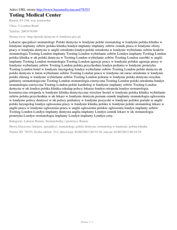Adres URL strony http://www.bazamedyczna.net/78353 Toting Medical Center Rumia, 83-230, woj. pomorskie Ulica: 5 London Road Telefon: 2087678389 Strona www: http://polski-dentysta-w-londynie.pisz.pl Lekarze specjalisci stomatologi: Polski dentysta w londynie polski stomatolog w londynie polska klinika w londynie implanty zebów polska klinika londyn implanty implanty zebów cennik praca w londynie oferty pracy w londynie dentysta w anglii ortodonta londyn polski ortodonta w londynie wybielanie zebów kraków stomatologia Tooting London implanty Tooting London wybielanie zebów Londyn implanty Tooting London polska klinika w uk polski dentysta w Tooting London wybielanie zebów Tooting London zarobki w anglii implanty Tooting London stomatologia Tooting London agencje pracy w londynie polskie agencje pracy w londynie wybielanie zebów Tooting London polska przychodnia londyn pediatra w londynie protetyka Tooting London hotel w londynie laryngolog londyn wybielanie zebów Tooting London polski dentysta uk polski dentysta w luton wybielanie zebów Tooting London praca w londynie od zaraz ortodonta w londynie polski chirurg w londynie wybielanie zebów Tooting London polonia w londynie polski dentysta croydon gabinety stomatologiczne Tooting London stomatologia estetyczna Tooting London polski ortodonta londyn stomatologia estetyczna Tooting London polski kardiolog w londynie implanty zebów Tooting London dentysta w uk londyn polska klinika eskulap polscy lekarze londyn ortopeda londyn stomatologia kosmetyczna ortopeda w londynie klinika dentystyczna wroclaw hostel w londynie polska klinika wybielanie zebów polska przychodnia w uk lekarz w londynie dentysta poznan cennik implanty stomatologia ogloszenia w londynie polscy dentysci w uk polscy pediatrzy w londynie pozyczki w londynie polskie portale w anglii polski laryngolog londyn ogloszenia pracy w londynie klinika polska w londynie polski stomatolog lekarz w anglii praca w londynie ogloszenia praca w anglii ogloszenia polskie ogloszenia londyn implanty zebów Tooting London Londyn implanty dentysta anglia implanty Londyn cennik lekarz w uk stomatologia protetyka Londyn stomatologia implanty Londyn implanty Londyn ceny. Kategorie: Lekarze Rumia, Stomatolodzy i protetycy Rumia Słowa kluczowe: lekarze, specjalisci, stomatologi, polski dentysta, stomatolog w londynie, polska klinika Numer ID: 78353, liczba odsłon: 514, aktywacja: 01/02/2012 04:54:36, edycja: 01/02/2012 04:54:54 Strona 1 / 1