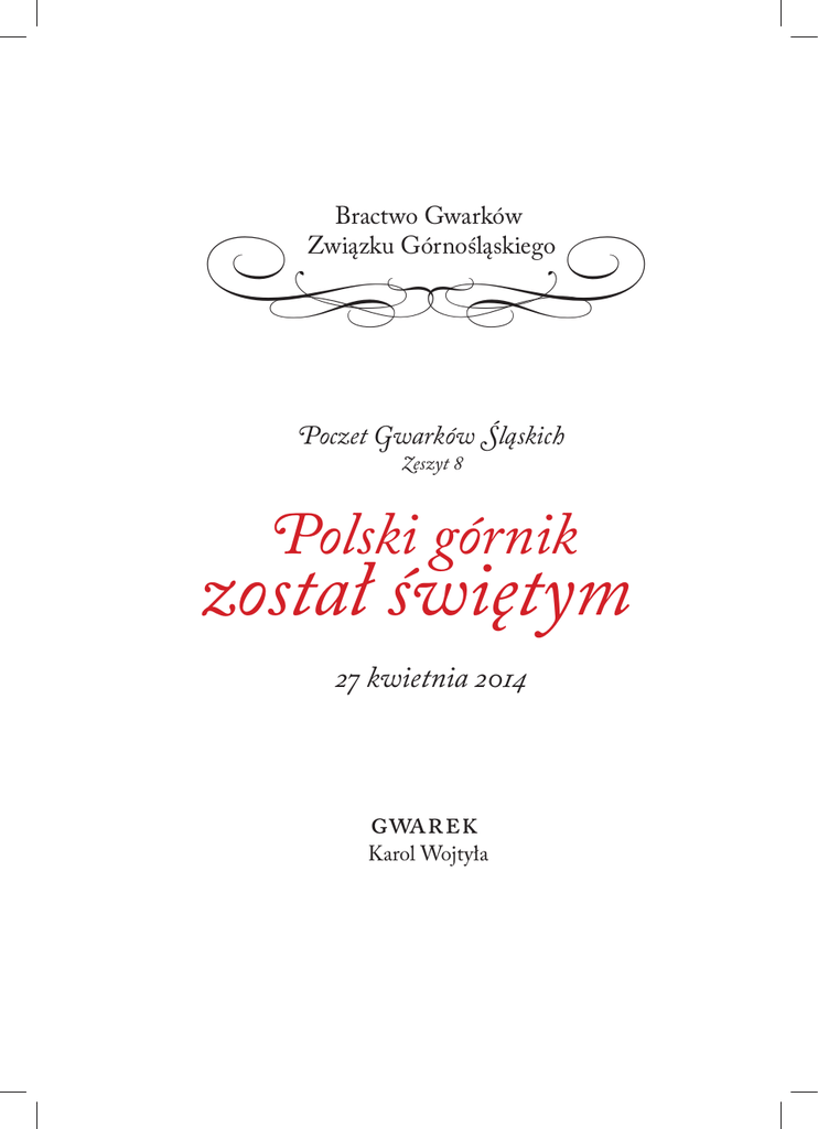 - -- - Bractwo Gwarków Związku Górnośląskiego Poczet Gwarków Śląskich Zeszyt 8 Polski górnik został świętym 27 kwietnia 2014 gwarek Karol Wojtyła Copyright © Stowarzyszenie Bractwo Gwarków and Authors Katowice 2014 ISBN: 978-83-938710-1-8 Kolegium redakcyjne: prof. dr hab. inż. Bronisław Barchański – przewodniczący mgr Mirosław Skibski – koordynator projektu mgr inż. Jerzy Mańka Bogusław Szyguła Redakcja językowa i korekta: Gabriela Niemiec Skład: LIBRON Okładka: LIBRON Na okładce wykorzystano fotografie: 1. Przerwa w pracy junaków (ze zbiorów archiwalnych Kurii Metropolitalnej w Krakowie). 2. Kamieniołom na Zakrzówku, w którym jako górnik pracował Karol Wojtyła (zdjęcie z okresu likwidacji kamieniołomu, ok. 60 ha, lata 90. XX w.; fot. A. Ostręga). 3. Przedstawiciele Dyrekcji i Orkiestra KWK „Wujek” (fragment) (18.05.1991; fot. A. Mari, „L’Osservatore Romano”). Wydawca: Stowarzyszenie Bractwo Gwarków ul. Kilińskiego 15, 40-060 Katowice tel. 519 318 856 e-mail: [email protected] www.gwarkowie.pl Wyszedł z Wadowic, przeszedł przez Kraków, doszedł na wzgórze Watykanu i z tego tytułu był nazywany Ojcem Świętym. Dzisiaj doszedł znacznie wyżej. Od dziś jego adres to nie Franciszkańska 3 ani Watykan. Jego adres brzmi: Niebo. Kardynał Stanisław Nagy Pracę niniejszą poświęcamy pamięci górników, którzy zginęli na stanowisku pracy w kraju i za granicą, a byli wszyscy otoczeni miłością, szacunkiem i uznaniem przez Ojca Świętego Jana Pawła II Spis treści Słowo wstępne Abp Wiktor Skworc 9 Wprowadzenie11 Bronisław Barchański Rozdział 1 Bronisław Barchański Symbioza Ojca Świętego Jana Pawła II ze społecznością górniczą Małopolski 1.1. Praca Karola Wojtyły w kamieniołomie na Zakrzówku 1.2. Wybrane przykłady kontaktów Ojca Świętego Jana Pawła II z zagranicznymi środowiskami górników 1.3. Ojciec Święty Jan Paweł II ponownie w „Solvayu” 1.4. Obopólne przyjacielskie stosunki Karola Wojtyły jako biskupa, kardynała i papieża ze środowiskiem akademickim AGH 1.4.1. Wprowadzenie 1.4.2. Pierwsze kontakty pracowników naukowych i studentów AGH z Ojcem Świętym Janem Pawłem II 1.4.3. Kolejne spotkania społeczności akademickiej AGH z Ojcem Świętym Janem Pawłem II 1.4.4. Doktorat Honoris Causa AGH dla Ojca Świętego Jana Pawła II 1.4.5. Żałobne posiedzenie Senatu AGH 1.4.6. V Edycja Dni Jana Pawła II 1.5. Kontakty Ojca Świętego Jana Pawła II z Wieliczką 15 15 28 37 44 44 47 50 67 75 85 90 1.5.1. Ożywione kontakty Wieliczki z Ojcem Świętym Janem Pawłem II w trakcie trwania Jego pontyfikatu (1978–2005)95 1.5.2. Szacunek i uwielbienie okazywane przez wieliczan Ojcu Świętemu Janowi Pawłowi II po Jego odejściu do Domu Ojca 111 Rozdział 2 Bogusław Szyguła, Jerzy Mańka, Mirosław Skibski Górnośląskie drogi Papieża Polaka 2.1. Pielgrzymki do Piekar Śląskich 2.1.1. „Przychodzę z królewskiego Krakowa” 2.1.2. Ze Stolicy Piotrowej 2.2. Wizyty Ojca Świętego na Górnym Śląsku 2.3. Wybrane spotkania Papieża z górnikami w Watykanie 2.4. Formy upamiętniania Papieża przez górników 2.5. Działalność Jana Pawła II w oczach górników filatelistów 137 137 139 157 185 224 239 246 Rozdział 3 Ks. Paweł Buchta Ewangelia pracy Jana Pawła II 273 Podsumowanie 277 Przypisy 281 Autorzy 286 Bronisław Barchański Autorzy ks. abp dr Wiktor Skworc Arcybiskup Metropolita Katowicki prof. dr hab. inż. Bronisław Barchański AGH Kraków członek Rady Programowej Bractwa Gwarków ks. kanonik mgr Paweł Buchta kapelan Bractwa Gwarków Autorzy mgr inż. Jerzy Mańka wiceprezes Bractwa Gwarków mgr Mirosław Skibski ARP SA Oddział w Katowicach członek Zarządu Bractwa Gwarków Bogusław Szyguła emerytowany górnik, kustosz Izby Tradycji przy KWK „Knurów-Szczygłowice” członek Bractwa Gwarków
