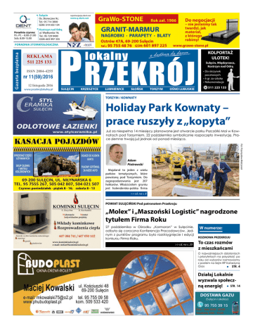 Sulęcin 12 listopada [email protected] nr 11(59)/2016 www.q-dent.net Os. Słoneczne 9c; Tel.: 95 714 3800 GSM: 519 503 134 Poradnia czynna: Pn.-Pt. – 8.00-21.00 Sob. 8.00-15.00 Kostrzyn nad Odrą ul. Wędkarska 16; Tel.: 95 729 9490 GSM: 603 997 355 Gazeta Gazeta bezpłatna bezpłatna PORADNIA STOMATOLOGICZNA REKLAMA REKLAMA 511 511 225 225133 133 ISSN 2084-4255 ISSN 2084-4255 7(43)/2015 nrnr11(59)/2016 9 lipca 2015 12 listopada 2016 www.przekrojlokalny.pl www.przekrojlokalny.pl GraWo-STONE Rok Rok zał. zał. 1986 1986 GRANIT-MARMUR NAGROBKI · PARAPETY · BLATY BLATY Do Do negocjacji negocjacji –– nie niejesteśmy jesteśmytak tak twardzi, twardzi,jak jak materiał, materiał, zz którego którego robimy! robimy! P RZEKRÓJ Ostrów 47A, 69-200 Sulęcin Sulęcin GSM: tel.: 601 897 897 225 225 tel.: 95 755 48 76 GSM: 601 www.grawo-stone.pl www.grawo-stone.pl lokalny lokalny SULĘCIN KRZESZYCE Arcydzieła wśród łazienek! LUBNIEWICE SŁOŃSK TORZYM 1 OŚNO LUBUSKIE TORZYMSULĘCIŃSKI / KOWNATY POWIAT KOLPORTAŻ SULĘCIN ULOTEK! KRZESZYCE Sulęcin, Międzyrzecz, Kostrzyn nad Odrą LUBNIEWICE •Do skrzynek SŁOŃSK pocztowych •6TORZYM gr. za sztukę •Rekomendacje OŚNO LUBUSKIE 511 225 133 KRZESZYCE Holiday Park Kownaty – prace ruszyły z „kopyta” i pomnik Najmłodszy starosta w Polsce „Inka” ma pozostanie na stanowisku swój plac SULĘCIN w w w. s t y l c e ra m i k a . p l mir Słonik i Lesław Majaland to jeden z wielu Widera. W uzasadparków tematycznych, które nieniu radni napisali, cd. na s. 16 powstaną pod Torzymiem. Do że nie podoba im się zagospodarowania jest 207 W obronie hektarów. Właścicielem gruntu P. Lewickiego podczas sesji stanęła >> cd. na s. 9 grupa młodzieży jest holendersko-polska firma >> cd. na s. 8 POWIAT SULĘCIŃSKI Pod patronatem Przekroju Uroczystości rozpoczęły się od mszy świętej. Po niej odczytano uchwałę rady gminy o nadaniu placowi imienia Danuty Siedzikówny ps. „Inka”. Pomnik odsłonili wójt Krzeszyc Stanisław Peczkajtis, dyrektor Biura Edukacji Publicznej IPN Andrzej Zawistowski, poseł Józef Zych i przewodnicząca Rady Gminy Krzeszyce Elżbieta Dominiczak. W zrealizowaniu pomnika „Inki” wymiernie pomogła Fundacja Niepodległości z Lublina. Wcześniej fundacja zaangażowała się w zmianę nazwy ostatniej w Polsce ulicy Bieruta na Gorzowską w W numerze: Rudnicy w gminie Krzeszyce. „Molex” i „Maszoński Logistic” nagrodzone tytułem Firma Roku 27 października w Ośrodku „Kormoran” w Sulęcinie, odbyła się coroczna Konferencja Pracodawców. Jednym z punktów programu było rozstrzygnięcie I edycji konkursu Firma Roku. UWAGA - ZMIANA ADRESU! >> cd. na s. 20 DO 30 LIPCA TANIEJ NI¯ W INTERNECIE ROZMOWA PRZEKROJU >> cd. na s. 6 To czas rozmów z mieszkańcami O najważniejszych działaniach i priorytetach na przyszłość po roku od wyborów rozmawiamy z posłem na Sejm RP Katarzyną Osos Sulęcin, ul. Pineckiego 14 STR. JUŻ OTWARTA! więcej informacji na s. 19 Agencja Pośrednictwa Pracy oferuje pracę w Holandii Dział - ogrodnictwo (szklarnie, hale) 69-200 Sulęcin, ul. Kupiecka 5/8 Pon.-pt. 8.00 - 16.00 tel. 95 757 71 89, kom. 534 779 977 NUMER CERTYFIKATU: 3656 95 755 41 11 600 057 964 [email protected] UWAGA - ZMIANA ADRESU BIURA! Działaj Lokalnie wyzwala DOSTAWAspołeczGAZU i okolice) STR. 14 ną (Sulęcin energię! Pon. - Sob. 8:00 - 20:00 DOSTAWA GAZU Niedziela 9:00 - 15:00 (Sulęcin i okolice) 95 755 39 15 - Sob. 95Pon. 755 398:00 15- 20:00 Niedziela 9:00 - 15:00 Fot. Przemysław Mielczarek Czynne: poniedziałek poniedziałek -- piątek piątek 8 8 -- 16; Czynne: 16; sobota sobota 8 8 -- 13 13 7 radnych było za odwołaniem starosty Patryka Lewickiego, 5 przeciw, a dwóch wstrzymało się od głosu. By odwołać starostę potrzebne było 9 głosów popie28 czerwca Już za niespełna 14 miesięcy planowane jest otwarcie parku Pszczółki w MaiKrzeszyw Kowrających wniosek. cach odbyła się uroczynatach pod Torzymiem. 22 października symbolicznie rozpoczęto inwestycję. Prastość nadania imienia Miesiąc temu trwają wnio- już jednak od ponad miesiąca. ce ziemne sek o odwołanie PaDanuty Siedzikówny ps. tryka Lewickiego ze „Inka” placowi rekreacyjstanowiska starosty no-wypoczynkowemu w złożyło czterech radcentrum miejscowości nych powiatu: Adam oraz odsłonięcia pomniBasiński, Mirosław Adam ka dzielnej sanitariuszki. Baranowski, SławoPiotrowski nr 11(59)/2016 2 Ogłoszenia Drobne LOKUM Biuro Nieruchomości w Sulęcinie poleca Zarządzanie WSPÓLNOTAMI MIESZKANIOWYMI – jestem na miejscu, nie musisz szukać zarządcy w innych miastach. Najnowsze na sprzedaż: mieszkanie Os. Słoneczne dom Bobrówko dom Walewice pole w Żubrowie działka w Miechowie mieszkanie w Lubniewicach pół domu w Smogórach 3 domy w Torzymiu mieszkanie Os. Żubrów dom w Miechowie 3 działki w Torzymiu 5 działek w Bielicach 7 działek bud. - Lubniewice Sulęcin domy szeregowe ul. Lukoszka Sulęcin dom ul. Wiejska, młyn ul. Młynarska dom ul. Sienkiewicza mieszkanie ul. Fabryczna Do wynajęcia: boksy sprzedażne przy ul. Kupieckiej domki handlowe obok „Bajki” dom w Lubniewicach dom w Sulęcinie kompleks handlowy w Sulęcinie Pozostałe oferty, zdjęcia i opisy na: http://lokum.tcn.net.pl Biuro Nieruchomości LOKUM Ostrów 2c, 69-200 Sulęcin tel. 503 65 75 00 [email protected] Kupię medale, znaczki pocztowe, monety złote, srebrne, stare kartki pocztowe i koperty ze znaczkami: polskie, rosyjskie i niemieckie. Tel. 609 110 831 Sprzedam ziemię HUMUS, kopaną ze stawu. 10 ton - 250 zł + transport Tel. 608 275 272 Sprzedam mieszkanie 3 pok. o pow. 53,6 m2, 3-piętro, Sulęcin, osiedle Słoneczne kontakt 732876464, Zdzisław Zamienię własne z gruntem, II piętro, 48 m2 + garaż w Bornem Sulinowie k/Szczecina na podobne w Sulęcinie, Torzymiu, Lubniewicach. Tel. 739 422 759 Sprzedam dom parterowy w Sulęcinie, nowo wybudowany w stanie surowym otwartym. Pow. użytkowa 117 m2 + garaż