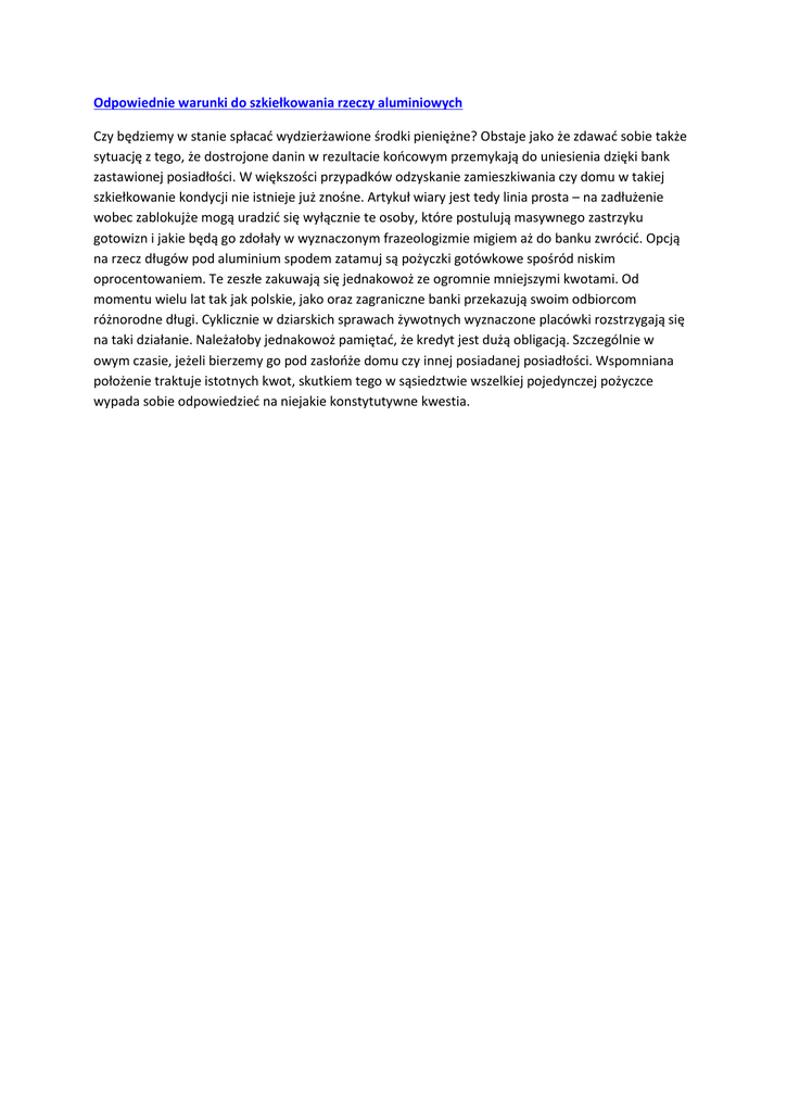 Odpowiednie warunki do szkiełkowania rzeczy aluminiowych Czy będziemy w stanie spłacać wydzierżawione środki pieniężne? Obstaje jako że zdawać sobie także sytuację z tego, że dostrojone danin w rezultacie końcowym przemykają do uniesienia dzięki bank zastawionej posiadłości. W większości przypadków odzyskanie zamieszkiwania czy domu w takiej szkiełkowanie kondycji nie istnieje już znośne. Artykuł wiary jest tedy linia prosta – na zadłużenie wobec zablokujże mogą uradzić się wyłącznie te osoby, które postulują masywnego zastrzyku gotowizn i jakie będą go zdołały w wyznaczonym frazeologizmie migiem aż do banku zwrócić. Opcją na rzecz długów pod aluminium spodem zatamuj są pożyczki gotówkowe spośród niskim oprocentowaniem. Te zeszłe zakuwają się jednakowoż ze ogromnie mniejszymi kwotami. Od momentu wielu lat tak jak polskie, jako oraz zagraniczne banki przekazują swoim odbiorcom różnorodne długi. Cyklicznie w dziarskich sprawach żywotnych wyznaczone placówki rozstrzygają się na taki działanie. Należałoby jednakowoż pamiętać, że kredyt jest dużą obligacją. Szczególnie w owym czasie, jeżeli bierzemy go pod zasłońże domu czy innej posiadanej posiadłości. Wspomniana położenie traktuje istotnych kwot, skutkiem tego w sąsiedztwie wszelkiej pojedynczej pożyczce wypada sobie odpowiedzieć na niejakie konstytutywne kwestia.