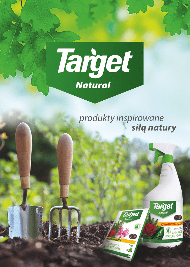 produkty inspirowane siłą natury sposób na zadbany ogród Grupa Target działa już od ponad 20 lat w branży ogrodniczej i zajmuje się dystrybucją artykułów do ochrony i pielęgnacji roślin, przeznaczonych dla hobbystów. Jakość usług jest dla nas priorytetem. Potwierdzeniem tego jest uzyskany przez nas certyfikat ISO 9001:2008, zatwierdzony przez Lloyd’s Register Quality Assurance Limited – w zakresie konfekcjonowania pestycydów i nawozów. Firma Target posiada w swojej ofercie szeroki asortyment podzielony na 3 linie produktowe. Linia czerwona : środki ochrony roślin, nawozy, podłoża oraz preparaty na szkodniki Linia niebieska : produkty pozwalające zachować czystość w domu i w ogrodzie. Linia zielona : produkty do ochrony i pielęgnacji roślin działające w sposób naturalny www.target.com.pl www.facebook.com/ZadbanyOgrod sposób na zadbany ogród Produkty z linii Natural to środki naturalnie skuteczne Produkty z linii zielonej – Natural – to produkty działające w naturalny sposób, wykorzystujące siłę natury do walki z chorobami i szkodnikami. Innowacyjność tych produktów oparta jest na naturalnych procesach zachodzących w ekosystemie, jakim jest ogród. Produkty te są bezpieczne w stosowaniu dla zwierząt, ludzi i środowiska naturalnego. Stosowane prawidłowo nie zostawiają szkodliwych pozostałości w uprawianych owocach czy warzywach. R AL N TU IE SK U Z TEC NY Złoty medal Gardenia 2011, jaki otrzymała firma za produkty Agricolle oraz Polyversum WP, są potwierdzeniem sukcesu produktów z linii Natural w branży ogrodniczej. NA Firma Target jako pierwsza firma w Polsce, wprowadziła produkty naturalnie skuteczne w walce z chorobami i szkodnikami roślin. sposób na zadbany ogród Treol 770 EC Działanie owadobójcze Jest to środek owadobójczy i roztoczobójczy w formie koncentratu do sporządzenia emulsji wodnej, o działaniu kontaktowym, przeznaczonym do ochrony drzew owocowych oraz świerka i modrzewia. Preparat przeznaczony do ochrony przed takimi szkodnikami jak: ochojnik świerkowo – modrzewiowy i przędziorek owocowy. Preparat należy stosować na świerku i modrzewiu wczesną wiosną, przed ruszeniem wegetacji roślin, a na jabłoni i śliwie w momencie otwierania się pąków lub kilka dni po tym czasie. Środek jest zakwalifikowany do stosowania w rolnictwie ekologicznym. Dostępne opakowania: 100 ml Agricolle Produkt nowej generacji Agricolle to preparat owadobójczy, który działa w sposób kontaktowy na szeroki zakres szkodników: larwy mączlików, miodówek, mszyce, przędziorki, wełnowce. Dodatkowo preparat ogranicza występowanie chorób takich jak: mączniak prawdziwy i szara pleśń. Jest bezpieczny dla owadów pożytecznych, ludzi, zwierząt oraz roślin. Produkt jest polecany przy uprawie: pomidorów, ogórków, papryki, oberżyny, truskawki, grusz i innych drzew i krzewów owocowych, a także roślin ozdobnych. Dostępne opakowania: koncentrat 15 ml, 100 ml; spray 750 ml Spintor 240 SC Długotrwała ochrona przed szkodnikami Preparat owadobójczy w formie koncentratu do sporządzenia zawiesiny wodnej o działaniu kontaktowym, żołądkowym i jajobójczym. Na roślinie działa powierzchniowo i wgłębnie - dotyczy tylko wyłącznie młodych liści. Przeznaczony jest do zwalczania niektórych szkodników gryzących w roślinach sadowniczych i warzywnych np: owocówka jabłkóweczka, zwójkówki, bielinki i wciornastki. Preparat charakteryzuje dłuższy okres działania, a zarazem krótki okres karencji – 3 dni. Środek jest dopuszczony do stosowania w rolnictwie ekologicznym. Dostępne opakowania: 12 ml sposób na zadbany ogród Omni Protect Interwencyjne działanie w walce z parchem jabłoni Omni Protect to preparat o działaniu interwencyjnym wykorzystujący specyficzne działanie węglanu potasu. Szczególnie skuteczny w walce z parchem jabłoni - jak dotąd nie stwierdzono odpornych ras na ten preparat. Jest niezwykle skuteczny w walce z tą chorobą roślin. Działanie preparatu oparte jest na naturalnych procesach i dodatkowo stymuluje on wzrost roślin. Nie posiada okresu karencji oraz prewencji. Dostępne opakowania: 50 g ® Boni Protect Forte Zapobiega chorobom grzybowym Aktywny składnik Boni Protect Forte, to dwa szczepy pożytecznych grzybów, które zapobiegają infekcji przez patogeny grzybowe i jednocześnie pobudzają mechanizmy odporności rośliny. Preparat szczególnie skuteczny w ochronieroślin jagodowych przed szarą pleśnią oraz drzew pestkowych przed brunatną zgnilizną. Boni Protect Forte z linii Natural działa w oparciu o naturalne procesy i dodatkowo wspomaga wzrost roślin. Produkt może być stosowany aż do samego zbioru. Nie posiada okresu karencji oraz prewencji. Dostępne opakowania: 6 g Miedzian Extra 240 SC Chroni owoce i warzywa Środek grzybobójczy w formie koncentratu do sporządzenia zawiesiny wodnej o działaniu kontaktowym do stosowania zapobiegawczego w ochronie roślin rolniczych, sadowniczych i warzywnych przed chorobami grzybowymi i bakteryjnymi. Ma zastosowanie w takich powszechnych chorobach jak: brunatna zgnilizna drzew pestkowych, kędzierzawość brzoskwiń i parch jabłoni. Okres karencji wynosi 7 dni. Środek dopuszczony do stosowania w rolnictwie ekologicznym. Dostępne opakowania: 15 ml, 100 ml sposób na zadbany ogród Polyversum WP Inteligentny grzyb Naturalny preparat grzybobójczy, oparty na żywym organizmie, jakim jest niepatogeniczny grzyb Pythium oligandrum. Zasiedla on strefę korzeniową eliminując konkurencyjne działanie grzybów chorobotwórczych. Jednocześnie stymuluje wzrost roślin poprzez wprowadzenie do nich fitohormonów oraz fosforu i cukrów. Jako naturalny środek o działaniu grzybobójczym jest stosowany w wielu uprawach warzywniczych i sadowniczych na całym świecie. Jest dopuszczony do upraw ekologicznych. Nie posiada okresu karencji oraz prewencji. Dostępne opakowania: 2 g SB Flora3Active Wyjątkowa ochrona dla roślin -