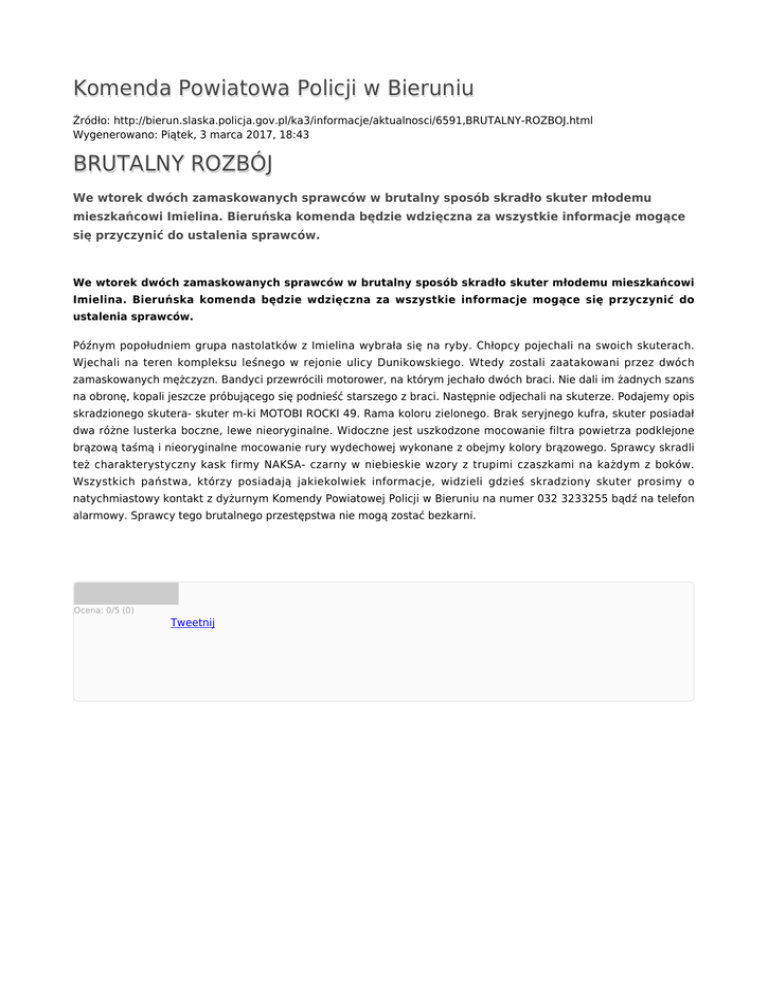 Komenda Powiatowa Policji w Bieruniu BRUTALNY ROZBÓJ