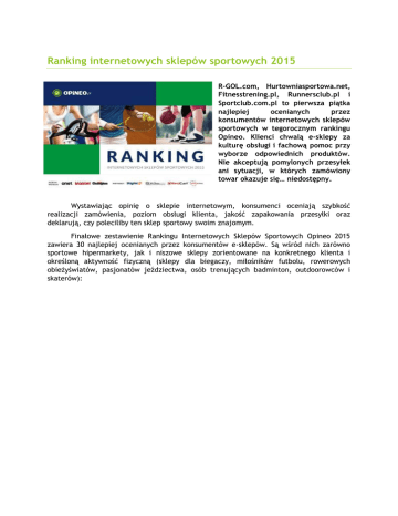 Ranking internetowych sklepów sportowych 2015