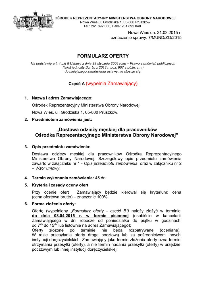 Formularz ofert - Ośrodek Reprezentacyjny MON