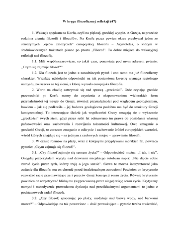 W kręgu filozoficznej refleksji (47) 1. Wakacje spędzam na Korfu