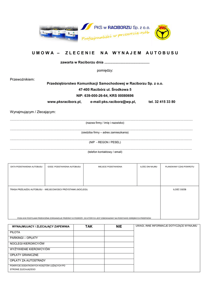 U M O W A - PKS w Raciborzu