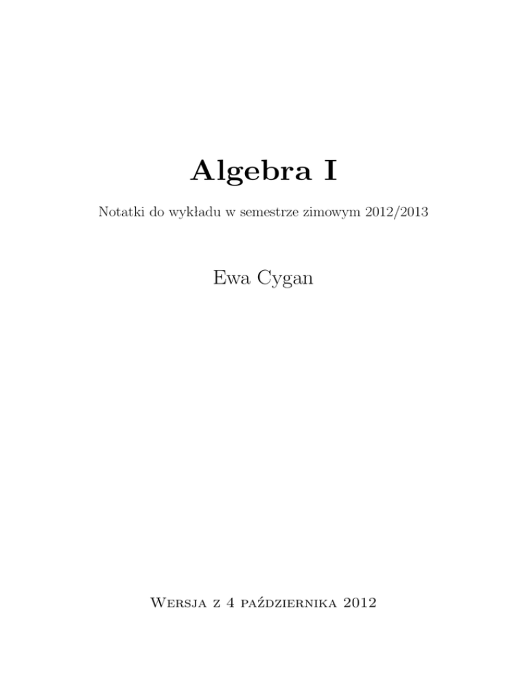 Notatki do wykładu w semestrze zimowym 2012/2013