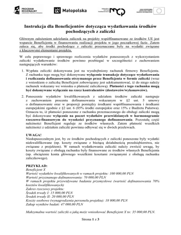 Instrukcja dla Beneficjentów dotycząca wydatkowania środków
