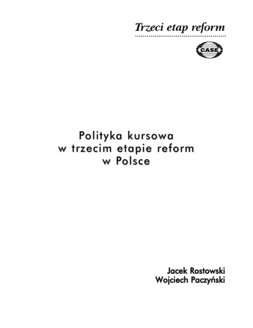 Trzeci etap reform P olityka kursowa w trzecim etapie reform w P olsce Jacek Rostowski Wojciech Paczyński Prezentowane stanowiska merytoryczne wyrażają osobiste poglądy autorów i niekoniecznie są zbieżne z oficjalnym stanowiskiem CASE – Centrum Analiz Społeczno- Ekonomicznych. Publikacja przygotowana w ramach projektu pn. Polska u progu członkostwa w Unii Europejskiej. Kierunki niezbędnych reform gospodarczych, zrealizowanego przez CASE – Centrum Analiz Społeczno-Ekonomicznych pod kierunkiem naukowym prof. dr hab. Barbary Błaszczyk. Słowa kluczowe: polityka kursowa, ERM2, kryteria z Maastricht, instytucje UE, EBC, Grupa euro, rozszerzenie UGW, konstytucja UE. Redakcja naukowa: dr Przemysław Woźniak Współpraca organizacyjno-techniczna: Anna Maciążek © CASE – Centrum Analiz Społeczno-Ekonomicznych, Warszawa 2004 ISBN: 83-7178-352-3 DTP: CeDeWu Sp. z o.o. Wydawca: CASE – Centrum Analiz Społeczno-Ekonomicznych ul. Sienkiewicza 12, 00-944 Warszawa tel.: (48 22) 622 66 27, 828 61 33, fax (48 22) 828 60 69 e-mail: [email protected] http://www.case.com.pl 2 www.case.com.pl Spis treści Wprowadzenie. . . . . . . . . . . . . . . . . . . . . . . . . . . . . . . . . . . . . . . . . . . . . . . . . . . . . . . . . . 6 I. Polityka kursowa w trzecim etapie reform w Polsce Jacek Rostowski. . . . . . . . . . . . . . . . . . . . . . . . . . . . . . . . . . . . . . . . . . . . . . . . . . . . . . . . . 9 1. Dylematy sukcesu i dylematy porażki . . . . . . . . . . . . . . . . . . . . . . . . . . . . . . . . . 9 2. Wybór systemu kursowego . . . . . . . . . . . . . . . . . . . . . . . . . . . . . . . . . . . . . . . . . 14 3. Implikacje dla polityki fiskalnej . . . . . . . . . . . . . . . . . . . . . . . . . . . . . . . . . . . . . 16 4. Obecny system bezpośredniego celu inflacyjnego. . . . . . . . . . . . . . . . . . . . . . . . 17 5. Bezpośrednie interwencje ad hoc na rynku walutowym. . . . . . . . . . . . . . . . . . . 18 6. Pośrednie systemy kursowe: ERM2 i „miękko-stały” kurs typu „soft peg”. . . . . . 20 7. Systemy kursów stałych, typu tzw. „hard peg” . . . . . . . . . . . . . . . . . . . . . . . . . . 25 Załącznik 1. Badania empiryczne dotyczące skuteczności interwencji na rynku walutowym . . . . . . . . . . . . . . . . . . . . . . . . . . . . . . . . . . . . . . . . . . . . . . . 27 Załącznik 2. Sterylizowana interwencja bez kosztów i możliwości jej zastosowania w obecnych warunkach polskich. . . . . . . . . . . . . . . . . . . . . . . . . . . 29 Załącznik 3. Zasady funkcjonowania ERM2 . . . . . . . . . . . . . . . . . . . . . . . . . . . . 33 Bibliografia . . . . . . . . . . . . . . . . . . . . . . . . . . . . . . . . . . . . . . . . . . . . . . . . . . . . . . 38 II. Instytucje Unii Gospodarczej i Walutowej: perspektywa rozszerzenia Wojciech Paczyński . . . . . . . . . . . . . . . . . . . . . . . . . . . . . . . . . . . . . . . . . . . . . . . . . . . . . 39 1. Procesy decyzyjne w EBC . . . . . . . . . . . . . . . . . . . . . . . . . . . . . . . . . . . . . . . . . 39 1.1. Szczegóły reformy . . . . . . . . . . . . . . . . . . . . . . . . . . . . . . . . . . . . . . . . . 42 1.2. Co jest naprawdę istotne? . . . . . . . . . . . . . . . . . . . . . . . . . . . . . . . . . . . . 44 1.3. Plusy i minusy reformy – perspektywa Polski . . . . . . . . . . . . . . . . . . . . . 44 1.4. Wnioski i podsumowanie . . . . . . . . . . . . . . . . . . . . . . . . . . . . . . . . . . . . 47 2. Przyszłość Grupy euro . . . . . . . . . . . . . . . . . . . . . . . . . . . . . . . . . . . . . . . . . . . . 48 www.case.com.pl 3 3 etap reform Jacek Rostowski Profesor ekonomii w Central European University w Budapeszcie. Tytuł B. Sc. uzyskał w londyńskim University College (1972), M. A. z ekonomii i historii w University of London w (1973) oraz M. Sc. z ekonomii w London School of Economics (1975). W latach 1988-1995 wykładowca w School of Slavonic and East European Studies, University of London, w latach 1992-1995 pracownik Centre for Economic Performance, London School of Economics. Od 2004 r. doradca zarządu Banku PEKAO S. A. W latach 1989-91 doradca ekonomiczny wicepremiera i ministra finansów, Leszka Balcerowicza, a w latach 1997-2001 szef Rady Polityki Makroekonomicznej w Ministerstwie Finansów RP. Były doradca rządu Federacji Rosyjskiej do spraw Polityki Makroekonomicznej. Współzałożyciel CASE – Centrum Analiz Społeczno-Ekonomicznych oraz członek Rady Fundacji. Autor licznych publikacji poświęconych problematyce poszerzonej Unii Europejskiej, polityce monetarnej, polityce kursowej, transformacji gospodarek postkomunistycznych. Wojciech Paczyński Absolwent Wydziału Matematyki i Informatyki Uniwersytetu Warszawskiego (2000), Wydziału Nauk Ekonomicznych Uniwersytetu Warszawskiego (1999) oraz Uniwersytetu Sussex w Wielkiej Brytanii (1998). Obecnie jest doktorantem Uniwersytetu w Dortmundzie w Niemczech. Specjalizuje się w zastosowaniach makroekonomii międzynarodowej, teorii gier oraz ekonomii politycznej. Z CASE – Centrum Analiz Społeczno-Ekonomicznych współpracuje od 2000 r. Redaktor naczelny i współautor anglojęzycznego kwartalnika „Global Economy” prezentującego bieżące tendencje i prognozy rozwoju gospodarki światowej. 4 www.case.com.pl Polityka kursowa w trzecim etapie reform w Polsce Streszczenie Rozdział I, autorstwa J. Rostowskiego, poświęcony jest dylematom związanym z polityką kursową w procesie dochodzenia do euro. W pierwszej części autor rozważając różne argumenty za i przeciw przyjęciu przez Polskę wspólnej waluty konkluduje, że jak najszybsze wprowadzenie euro leży w interesie naszego kraju. Autor zastanawia się następnie, jaki reżim kursowy powinna przyjąć Polska, aby pogodzić ze sobą różne cele, m. in. realnej i nominalnej konwergencji (kryteria z Maastricht), a jednocześnie zabezpieczyć się przed ryzykiem kryzysu walutowego. Rozważania obejmują obecny system bezpośre