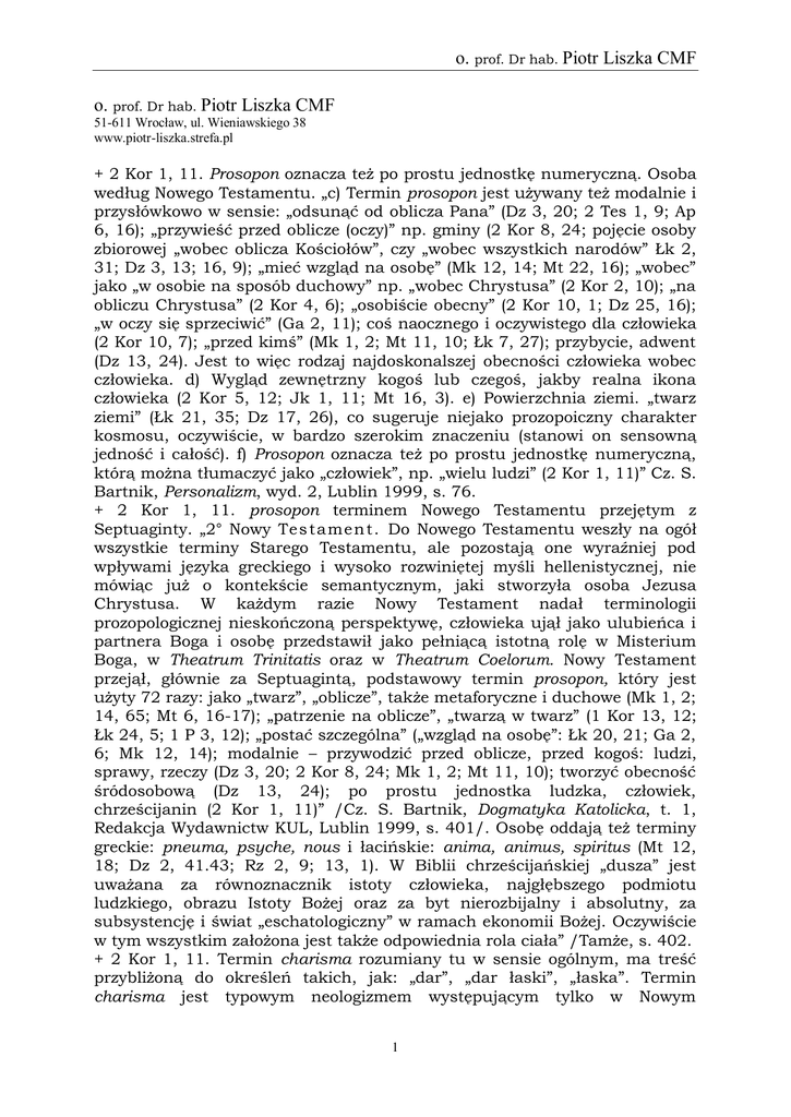 2 Kor - prof. Dr hab. Piotr Liszka CMF